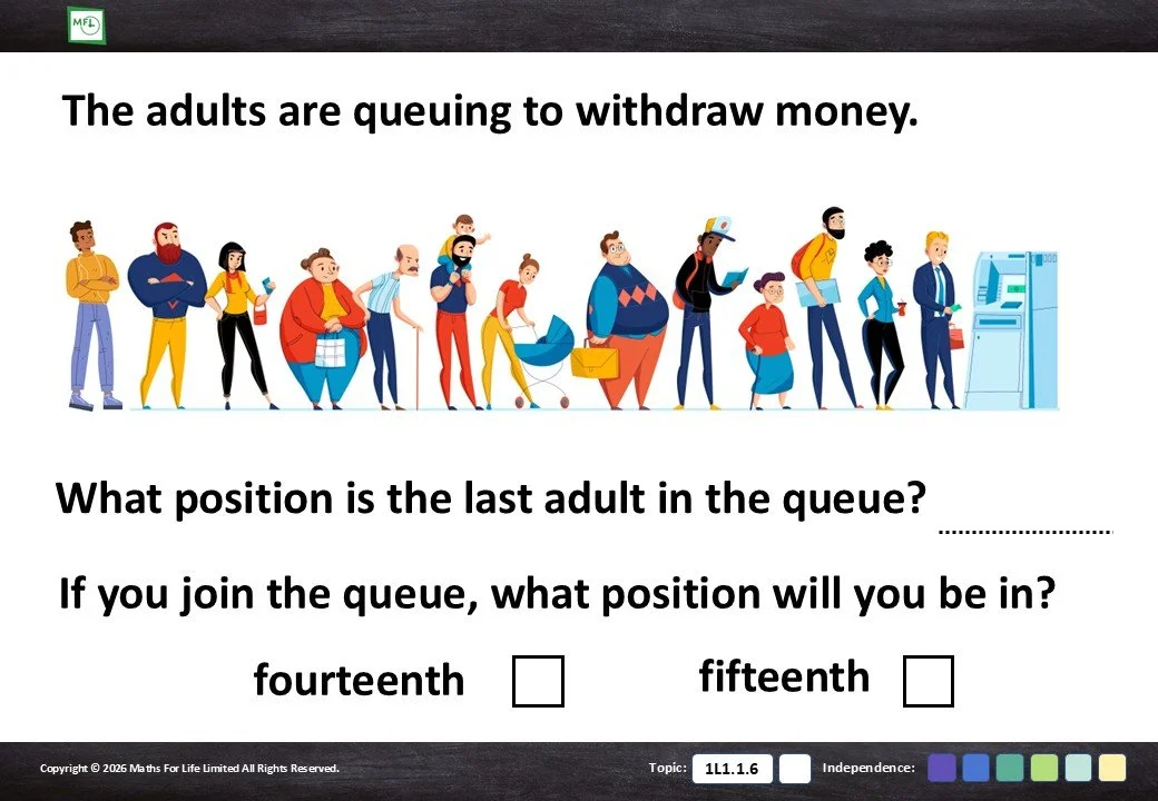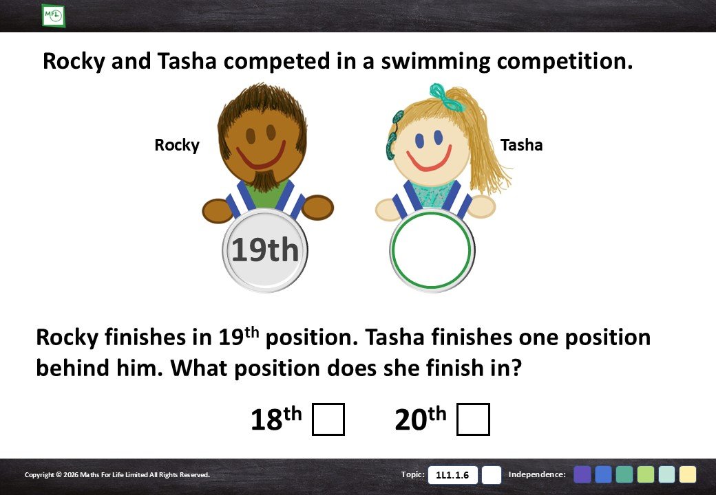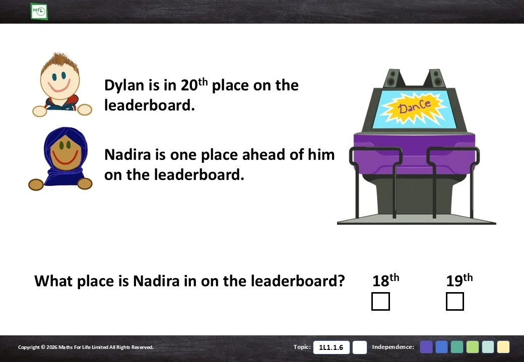 Work out the characters place on the leaderboard by adding or subtracting from ordinal numbers.