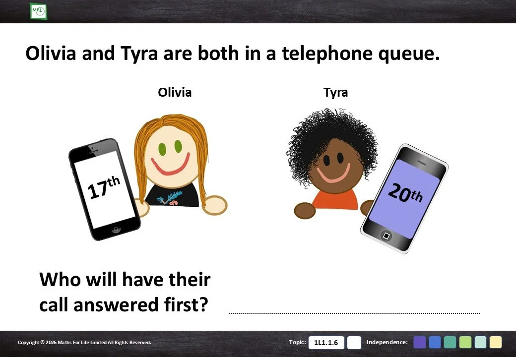 Identify whose call will be answered first or last in a telephone queue and identify position.
