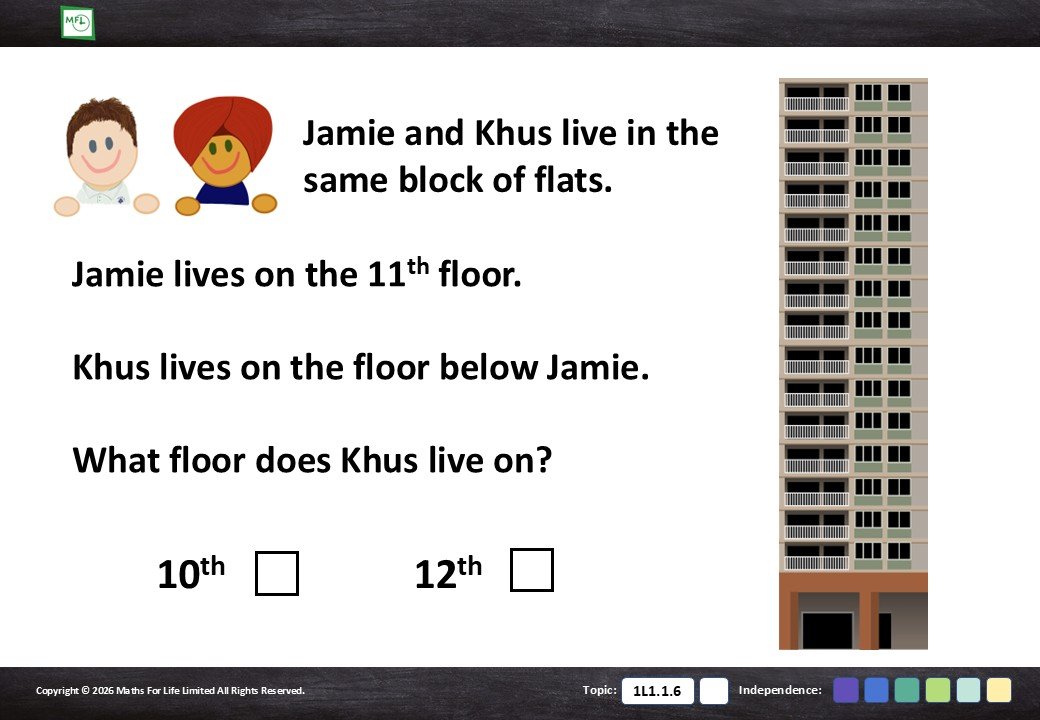 Identify which floor of a building by adding or subtracting from ordinal numbers.