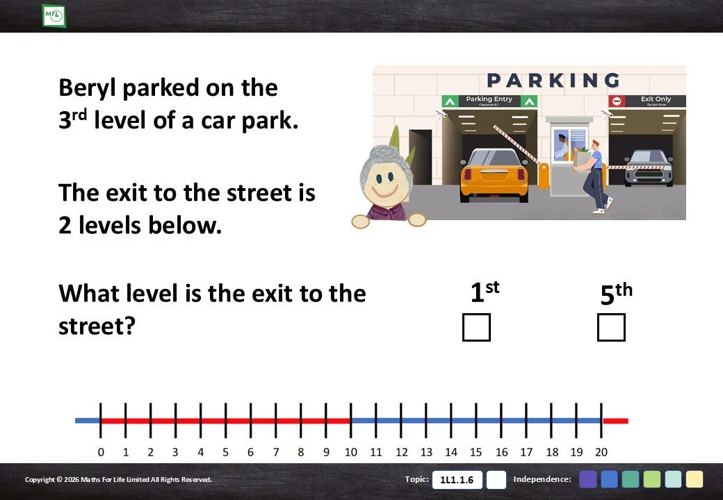 Work out which level the character needs to go to by adding or subtracting from ordinal numbers.
