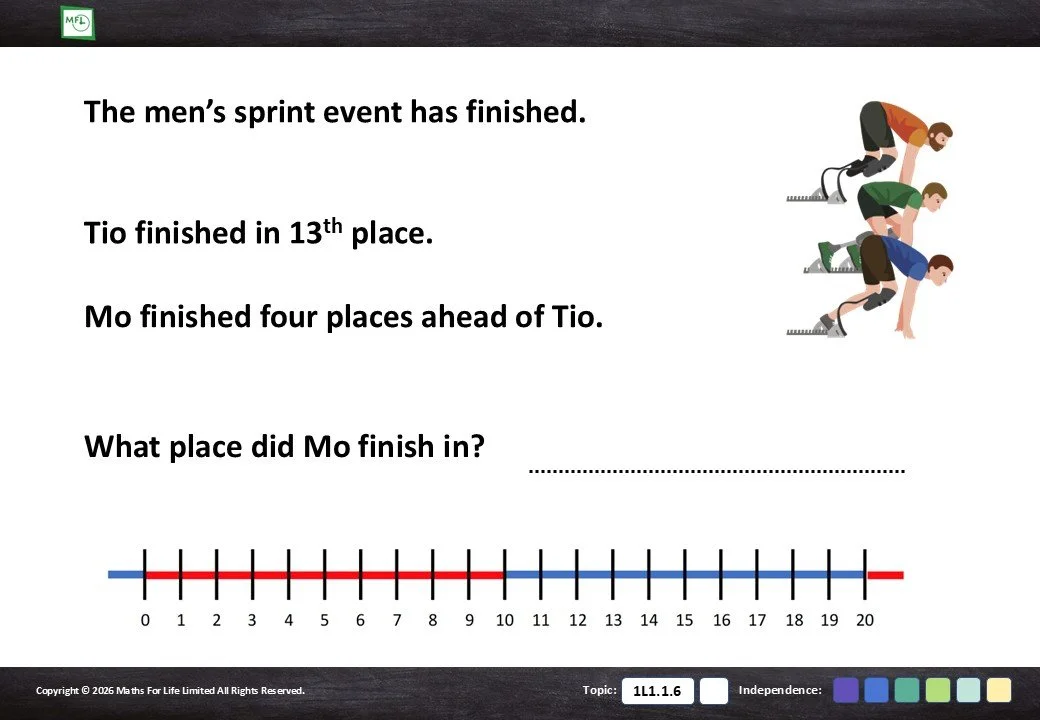 Work out the place an athlete finished in by adding or subtracting from ordinal numbers.