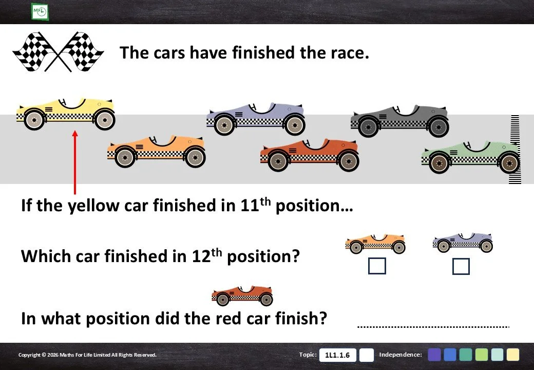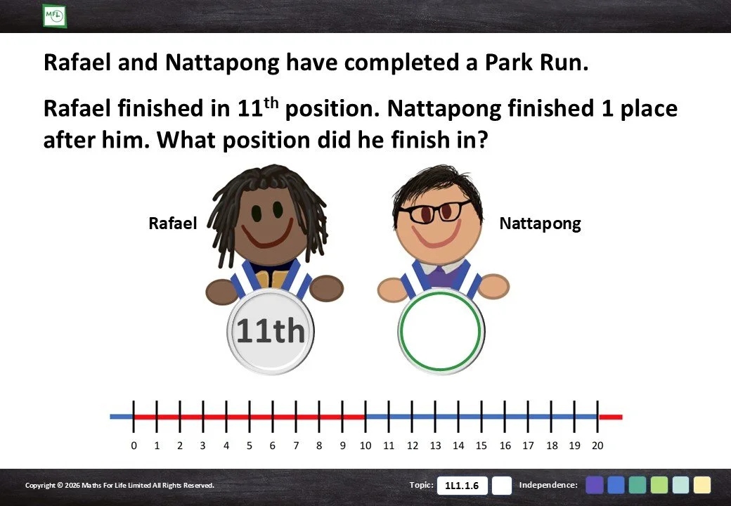 Work out the position a character finished a park run by adding or subtracting from ordinal numbers.