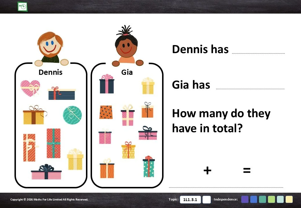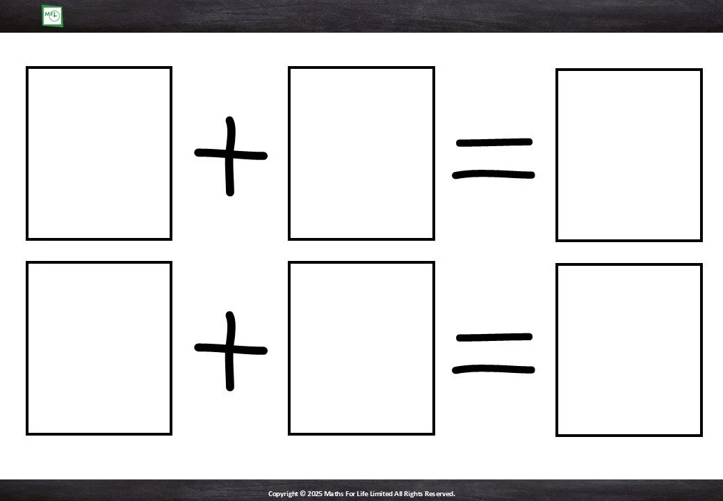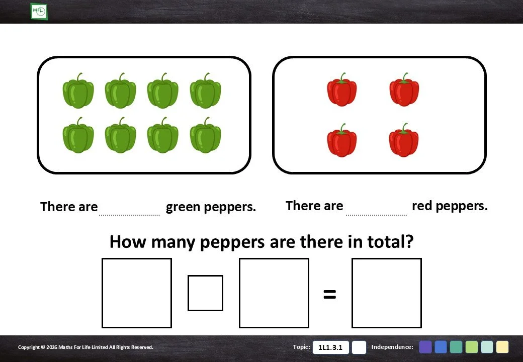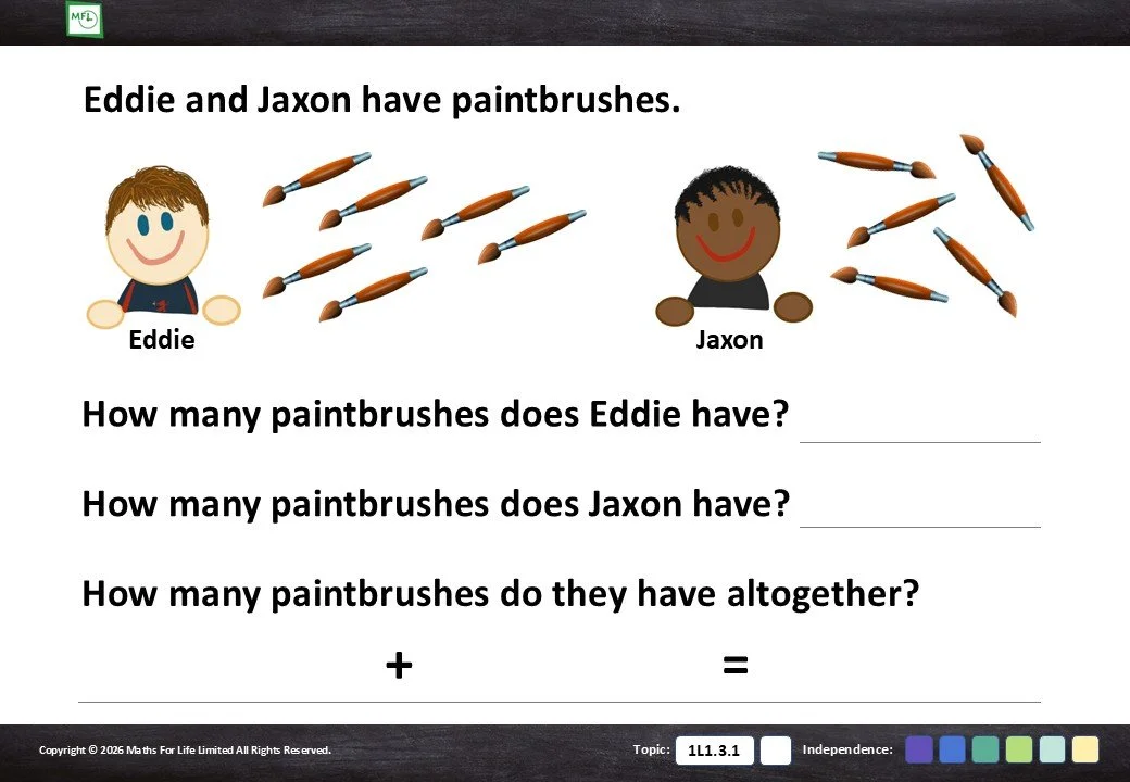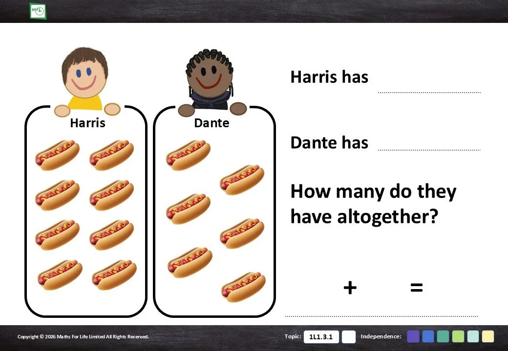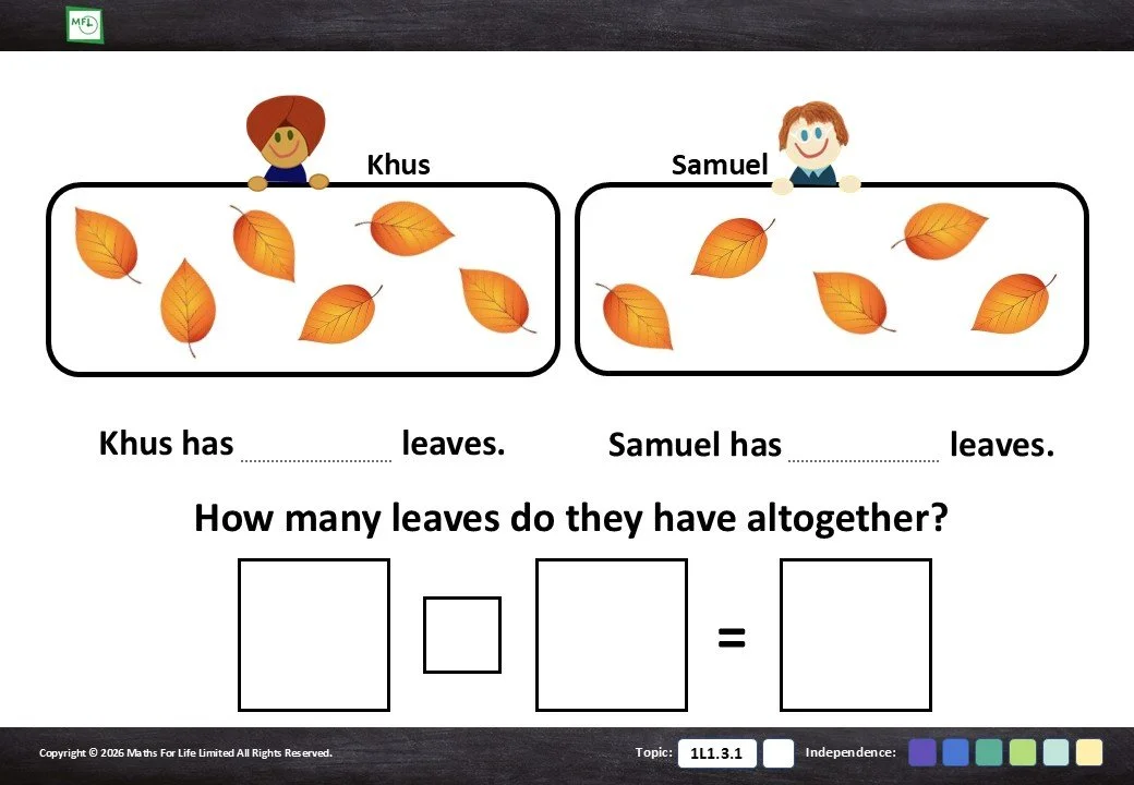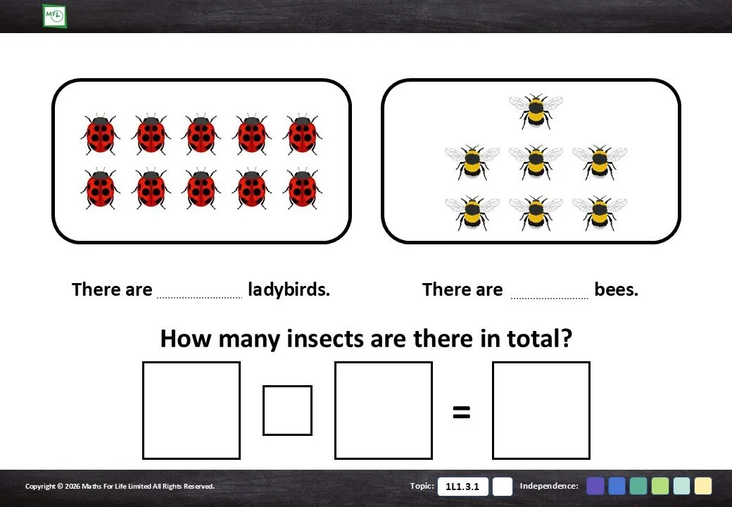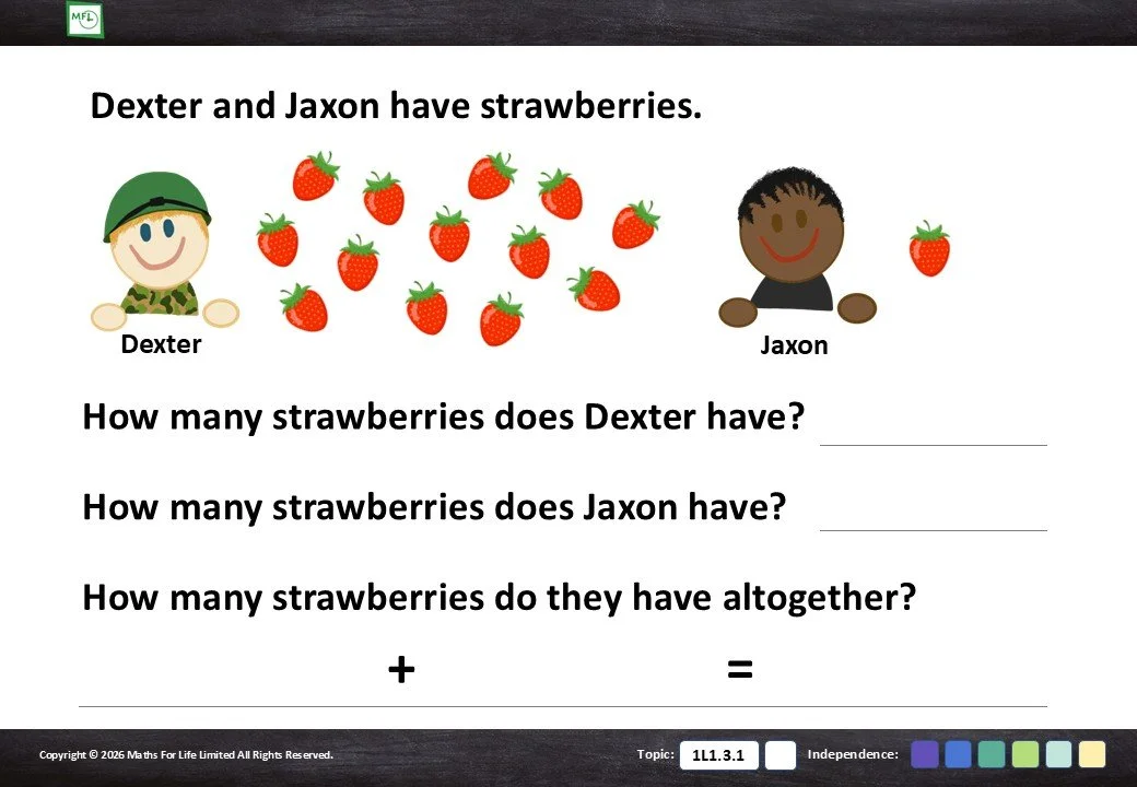 Work out “How many altogether…” for numbers up to 20 with symbols to aid.