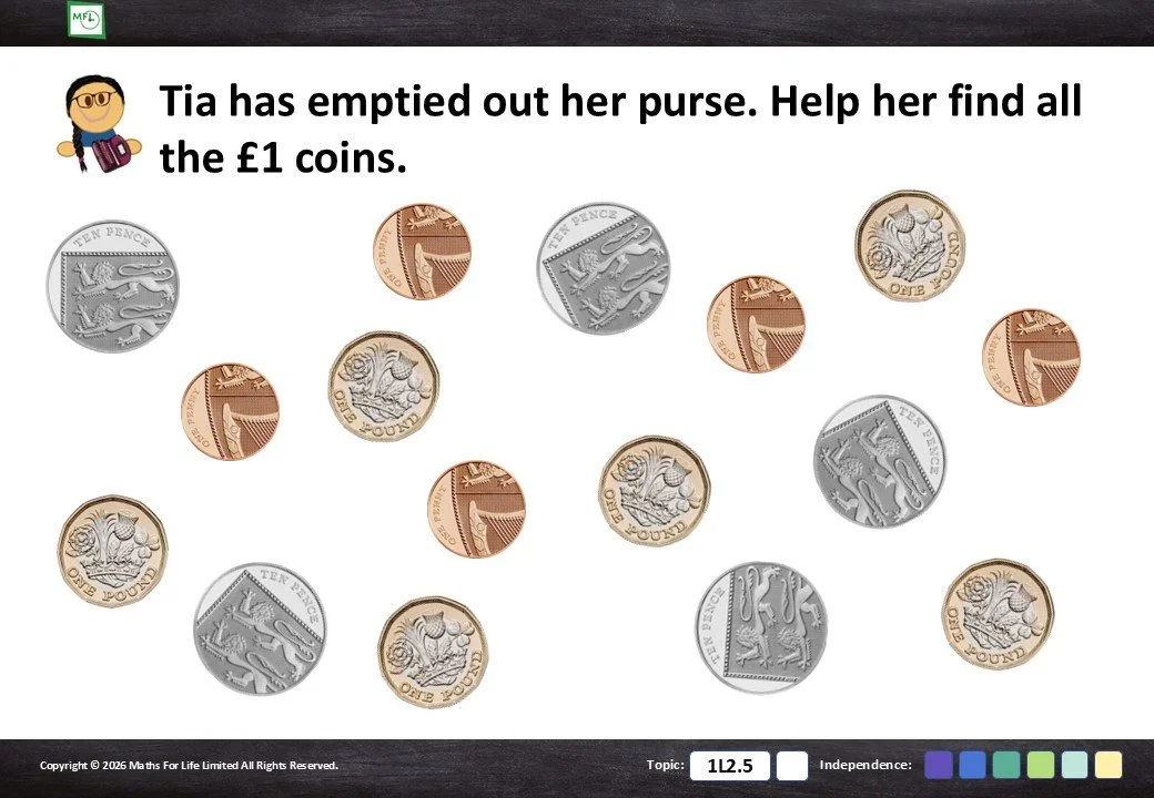 Identifying coins - ‘Find all the …’ game