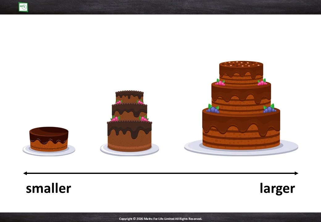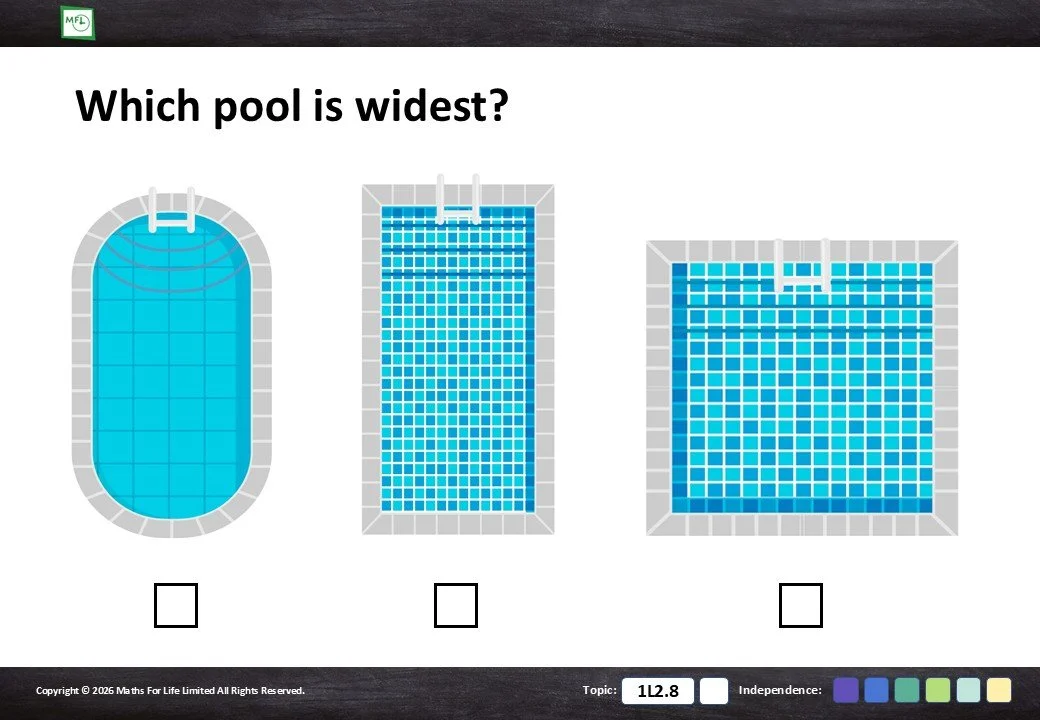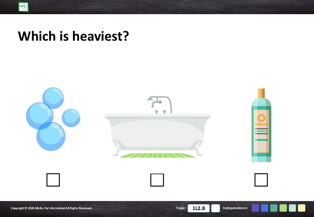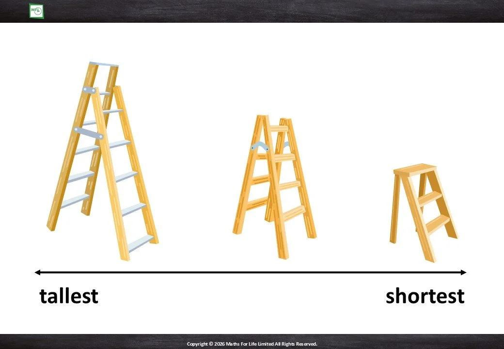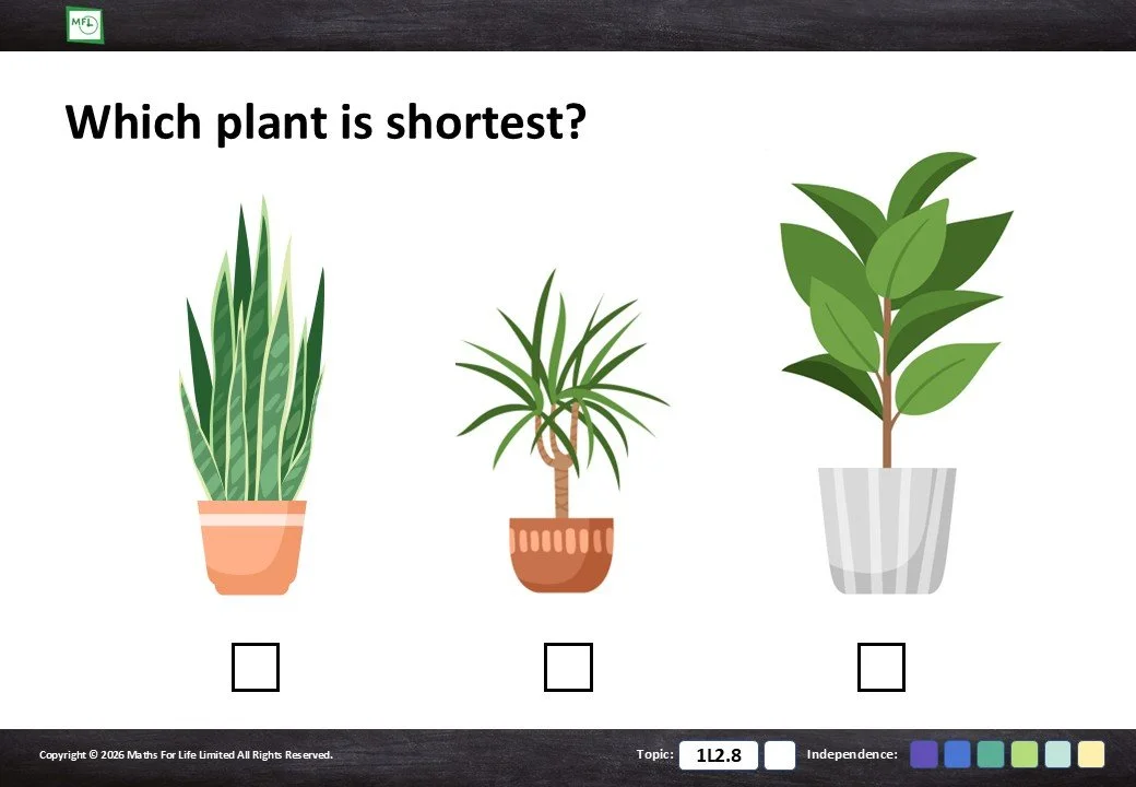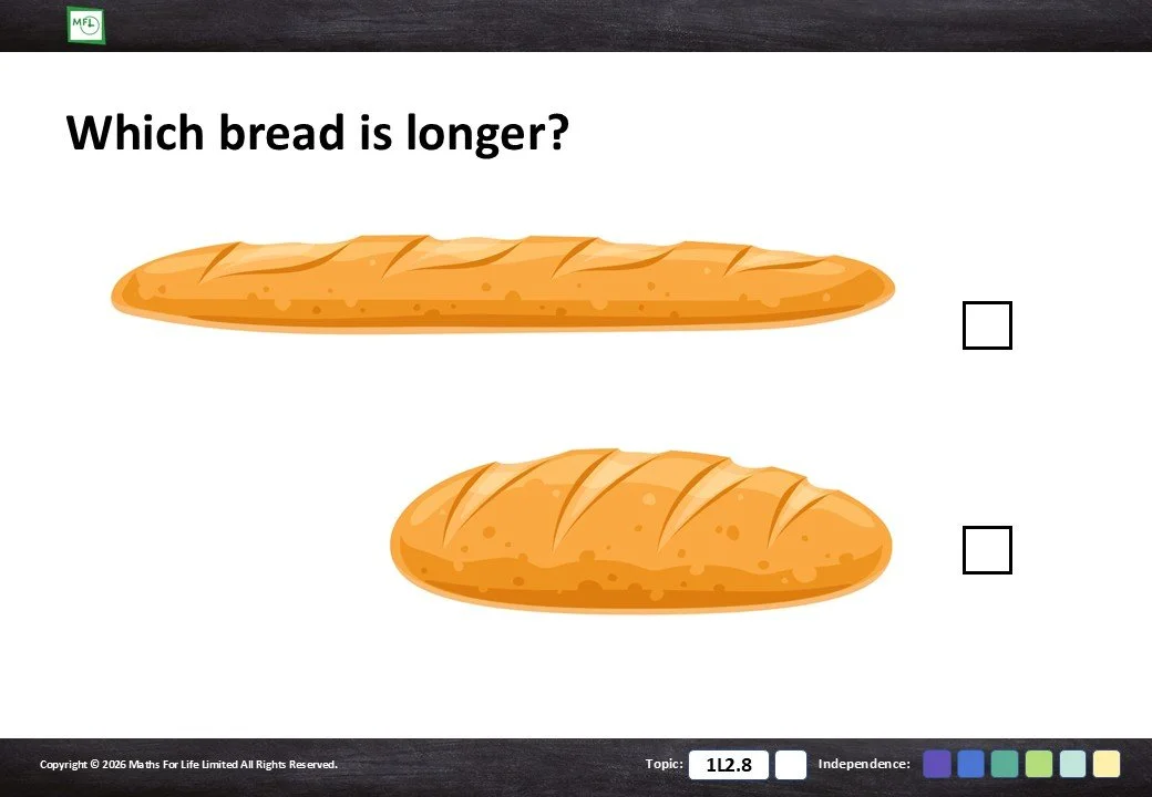 Looking at household items and choosing which is taller/shorter or longer/shorter.