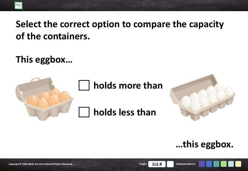 Identify if an object is holds more than or holds less than.