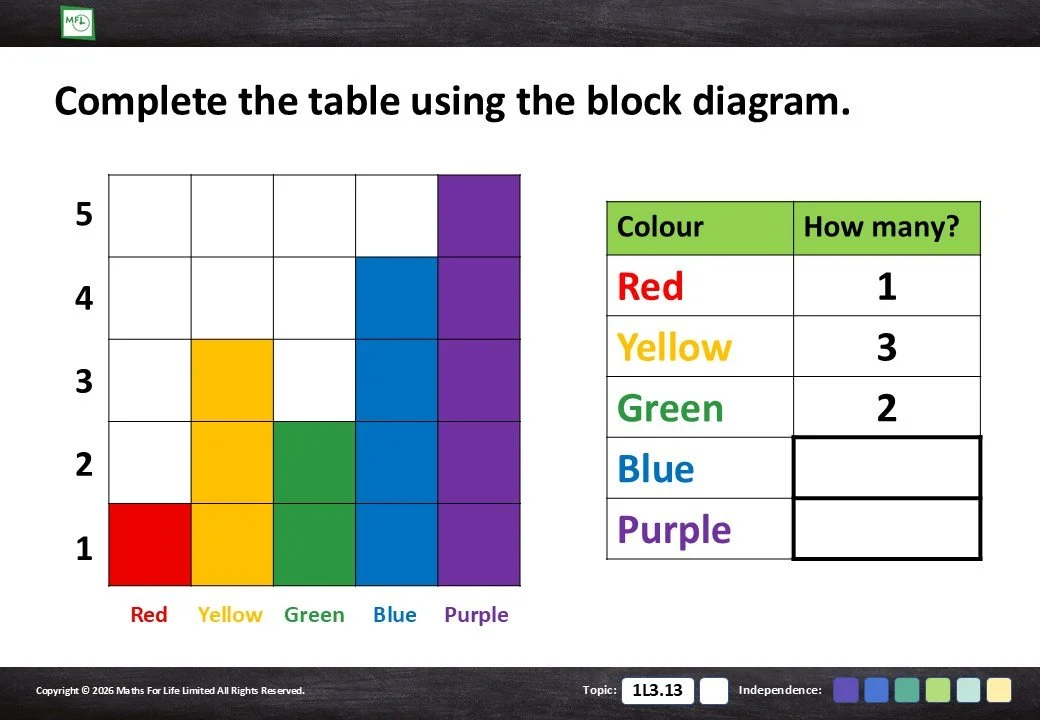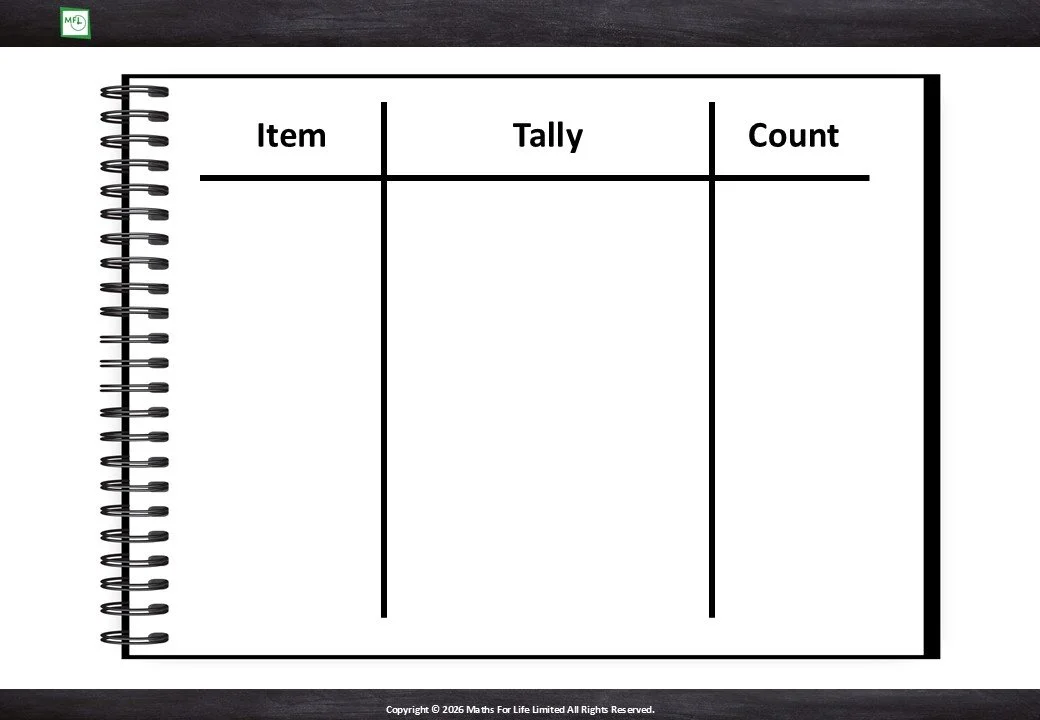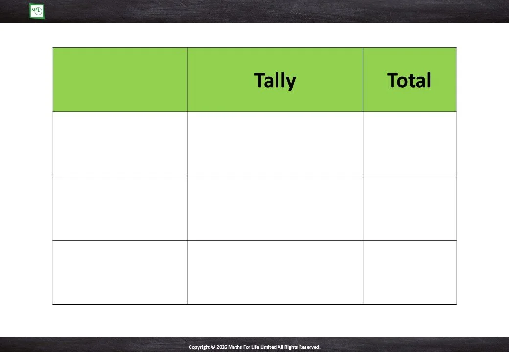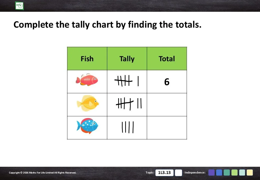 Read information from the tally chart to complete the table.