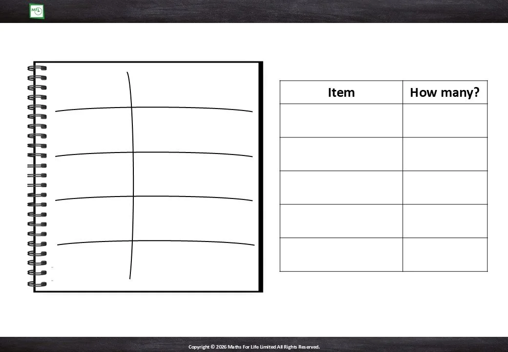 Complete the table by counting the objects and record in the tally chart.