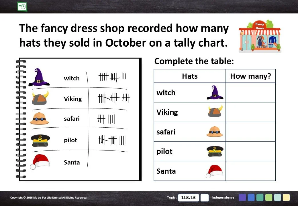 Read and draw tally charts to 10