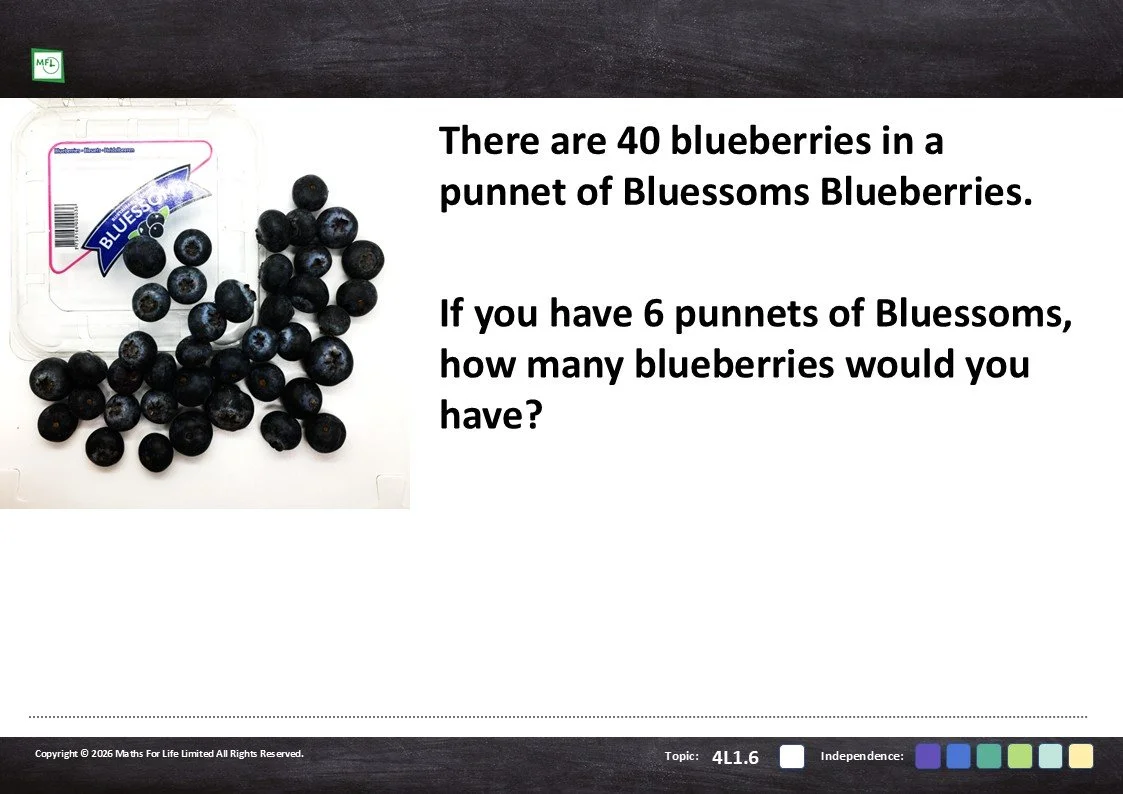 Practise multiplying 10, 20, 30, 40, 50, 60, 70, 80 and 90 by 4 and 5.