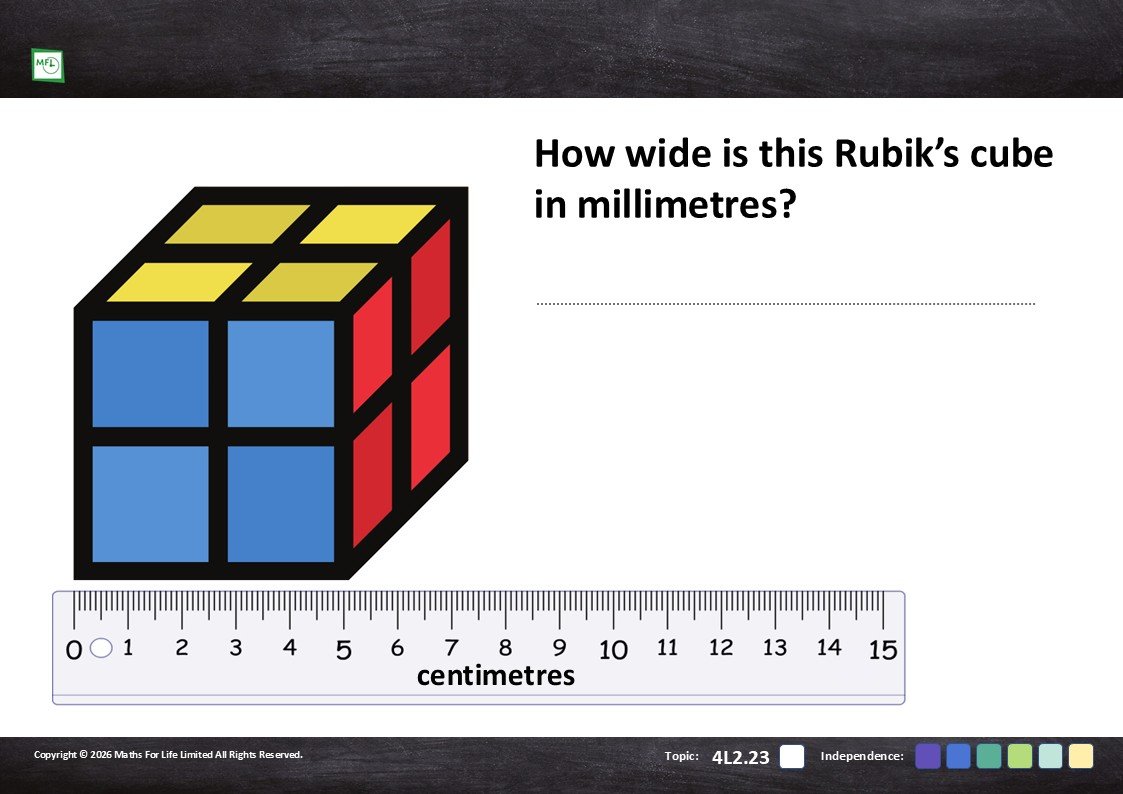Practise converting between millimetres and centimetres using real life objects and scales.