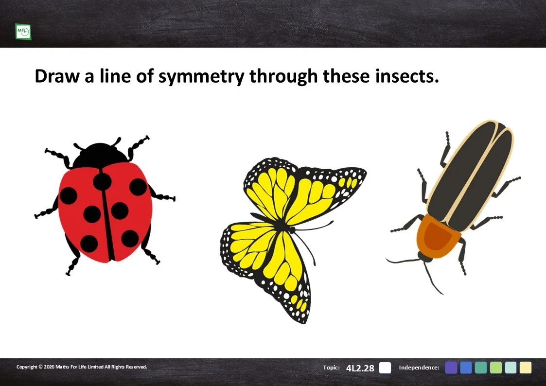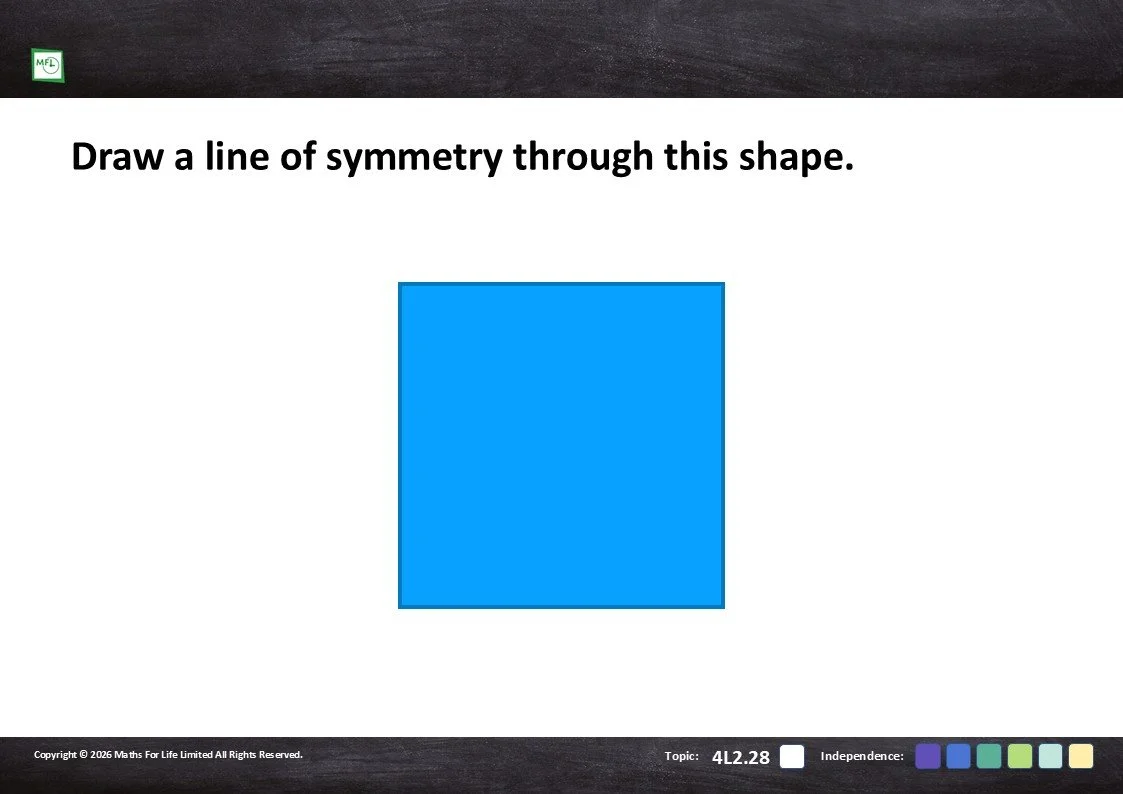 Draw or identify a line of symmetry in a shape, object or pattern. Extend the learning by asking how many lines of symmetry can be identified.