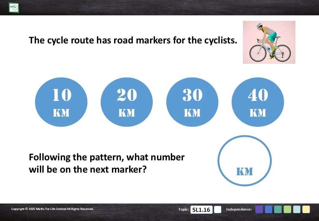 5L1.15 Recognise and continue linear sequences of whole numbers
