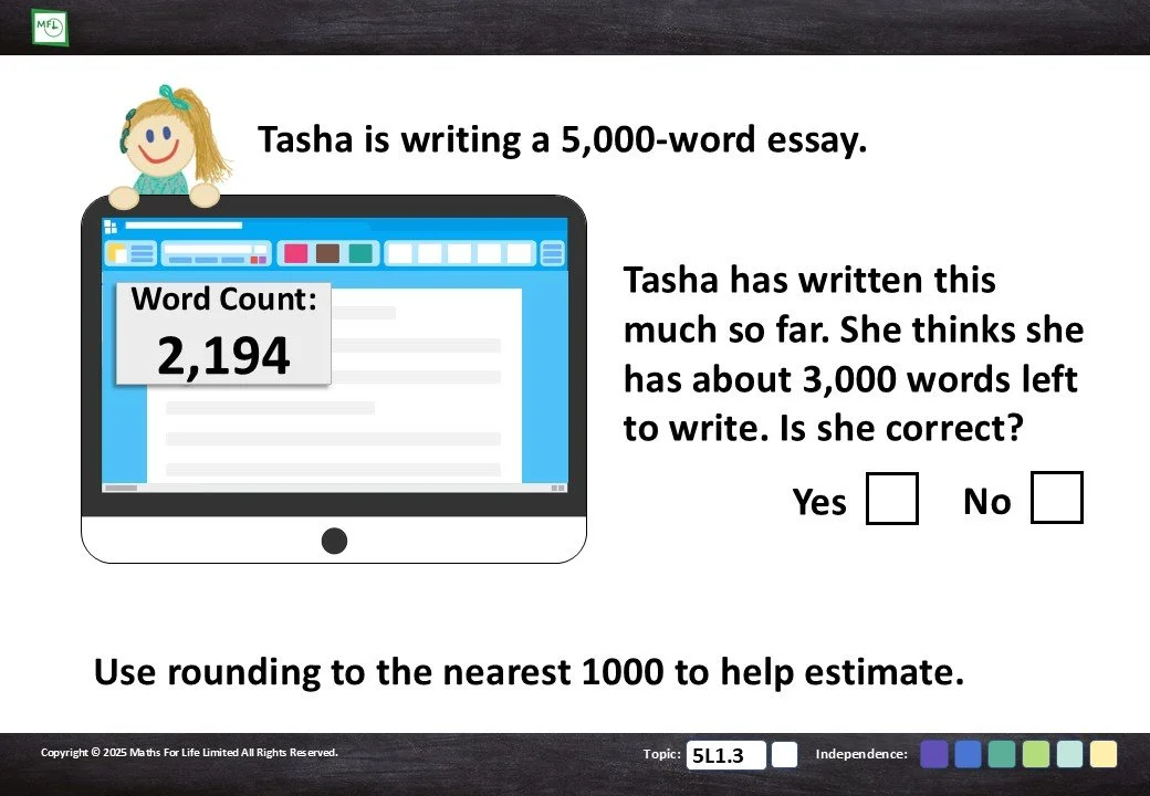 Use rounding to the nearest 10, 100 and 1000 to help approximate and check results of calculations.