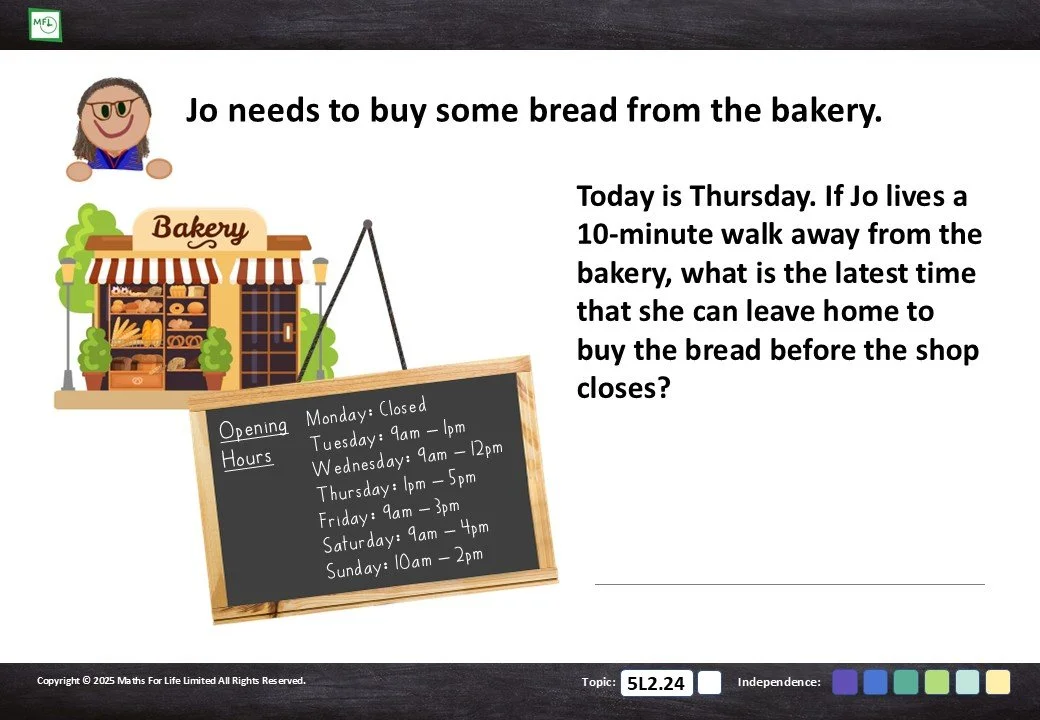 Make a plan with time calculations, including shop opening times, appointment making, transport timetables and booking activities.