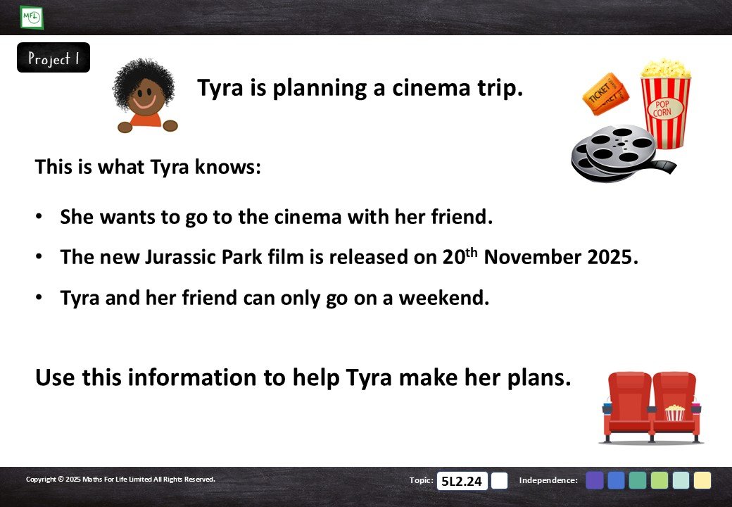 Use time calculation skills, both clock and calendar, and provide scaffolding to complete the projects.