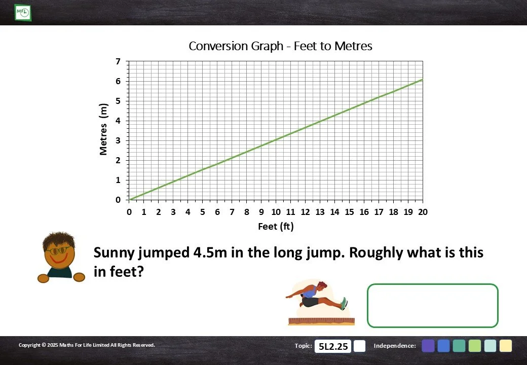 Extract information from conversion graphs and tables to convert between imperial and metric.