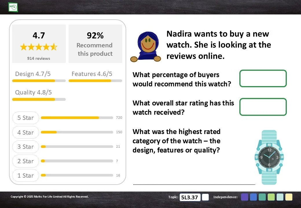5L3.37 Extract information from lists, tables, charts, and line graphs
