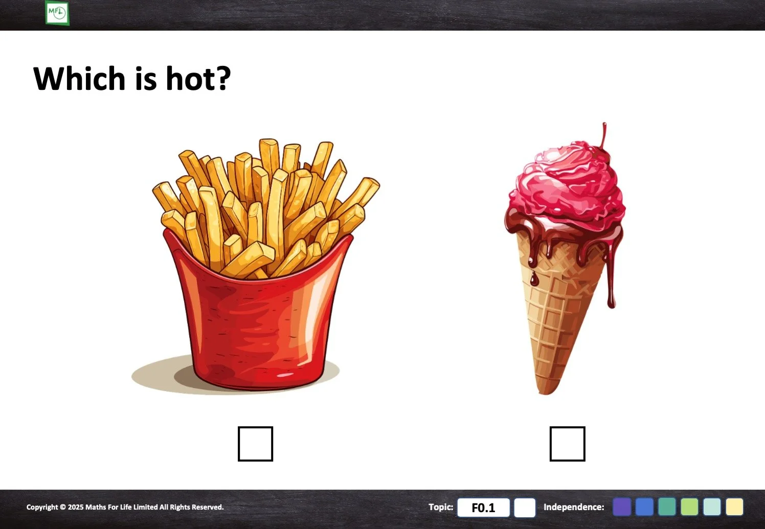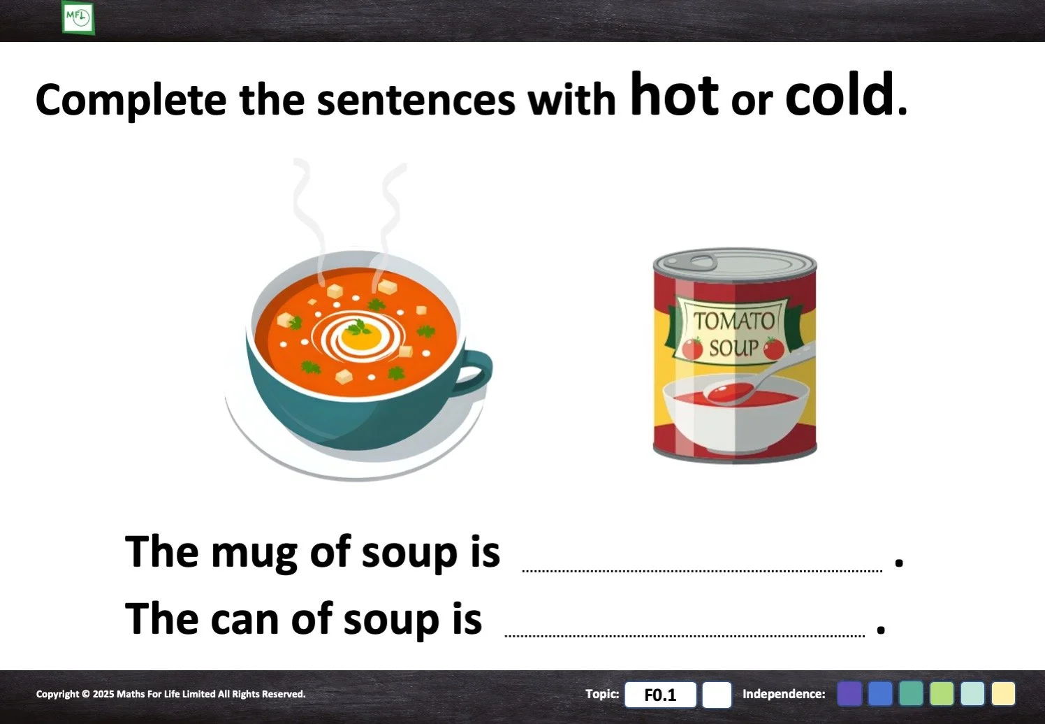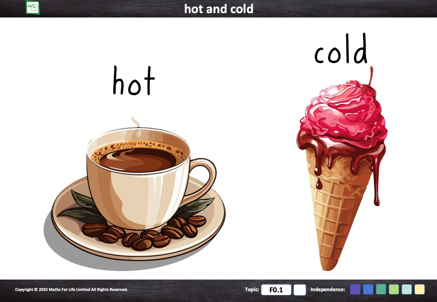 Pictorial and word representations of ‘hot’ and ‘cold’.