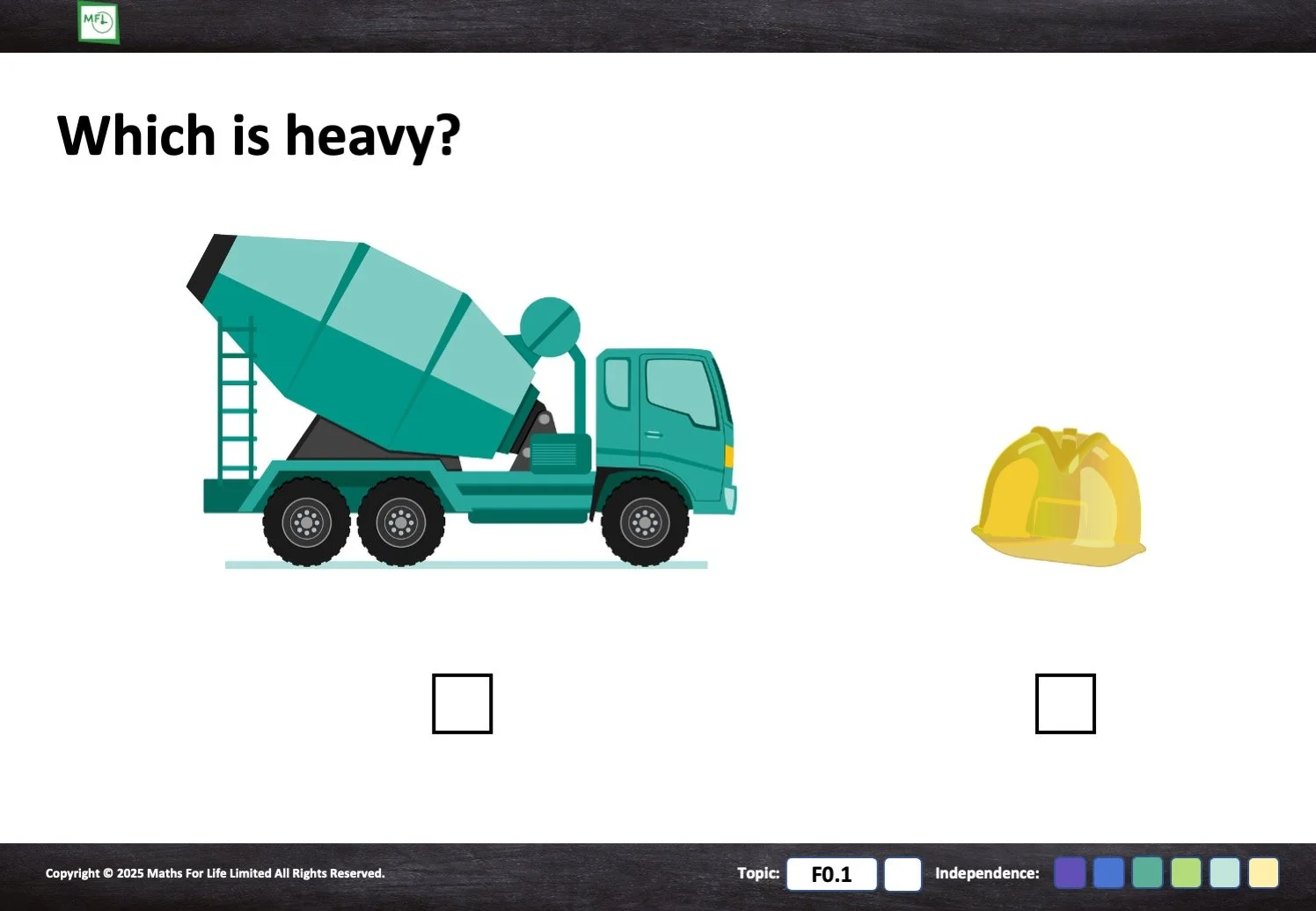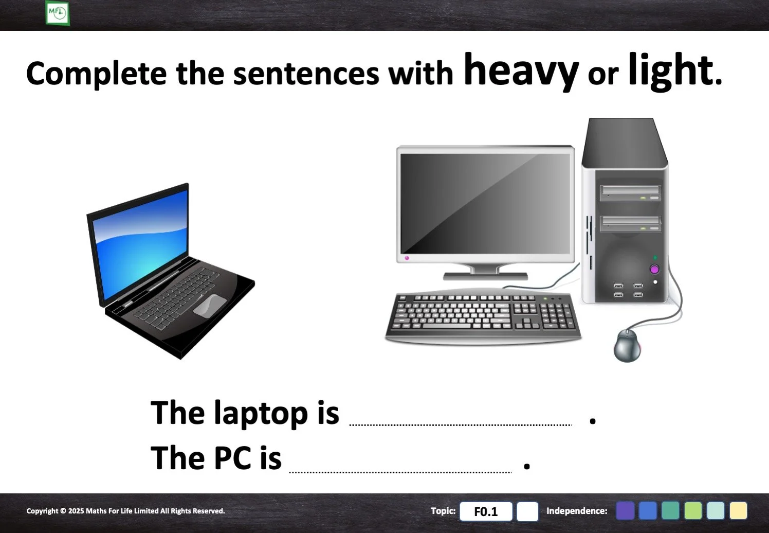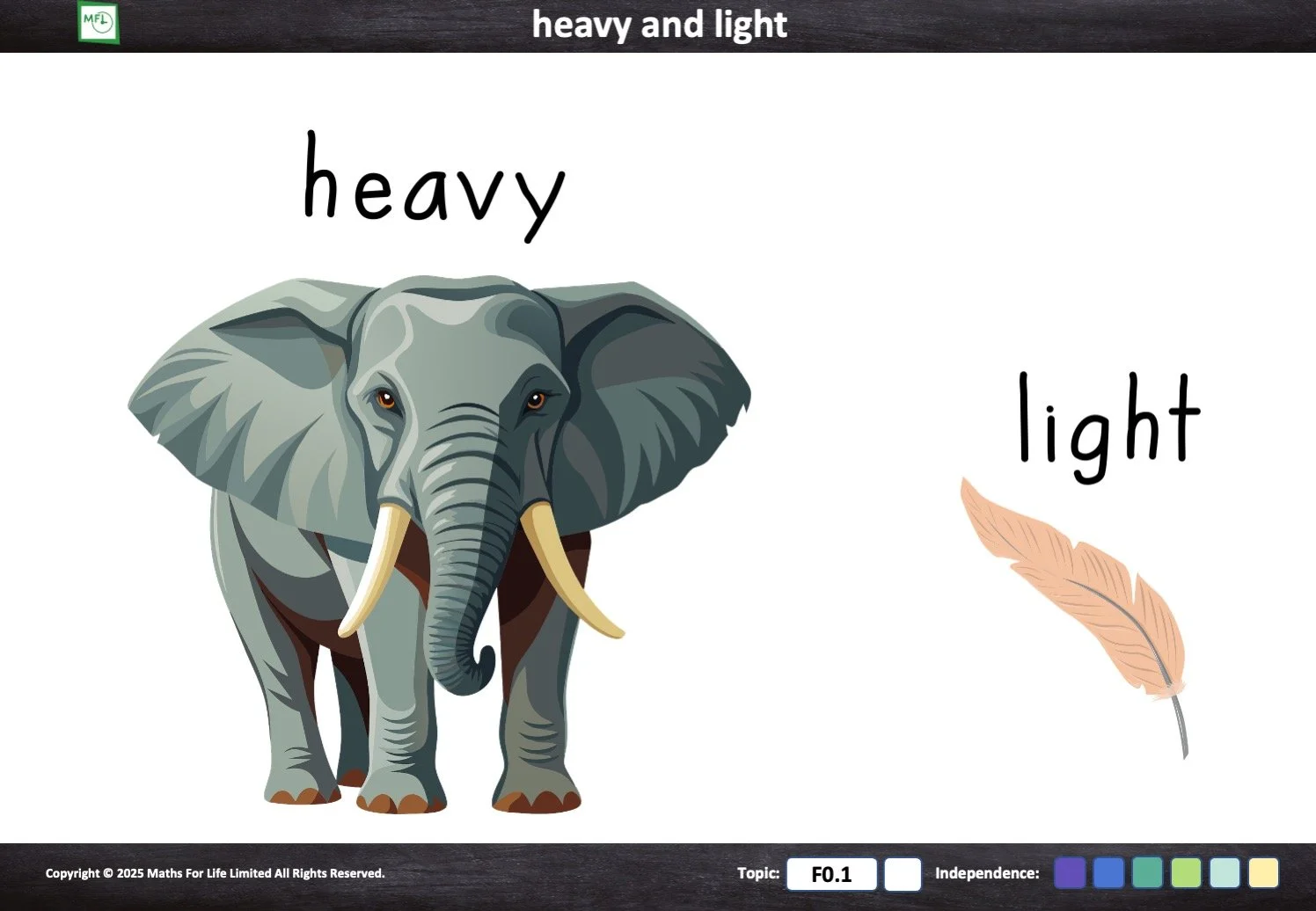Pictorial and word representations of ‘heavy’ and ‘light’.