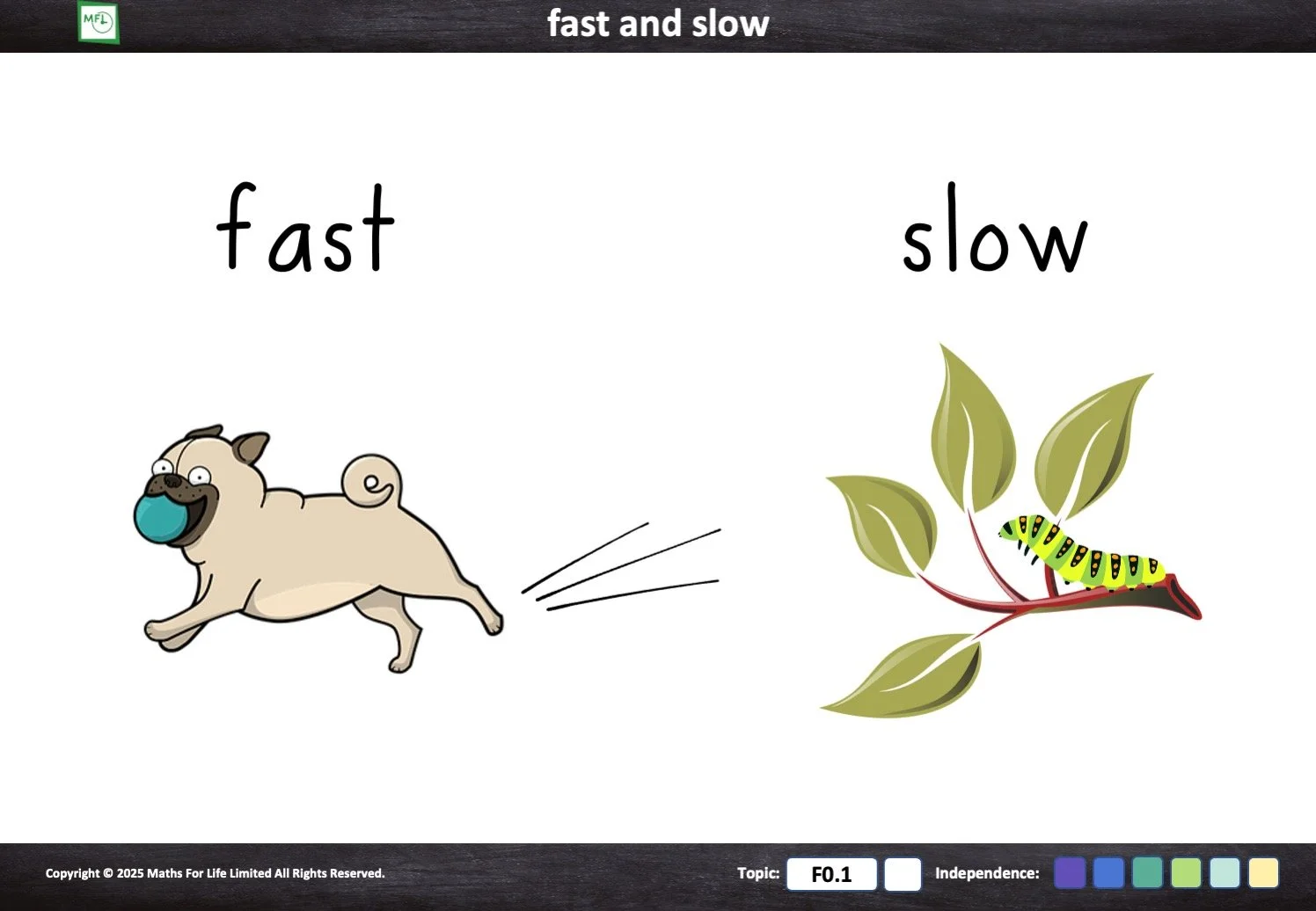 Pictorial and word representations of ‘fast’ and ‘slow’.