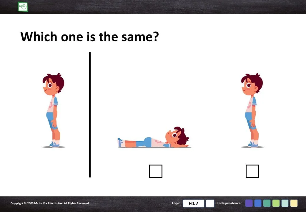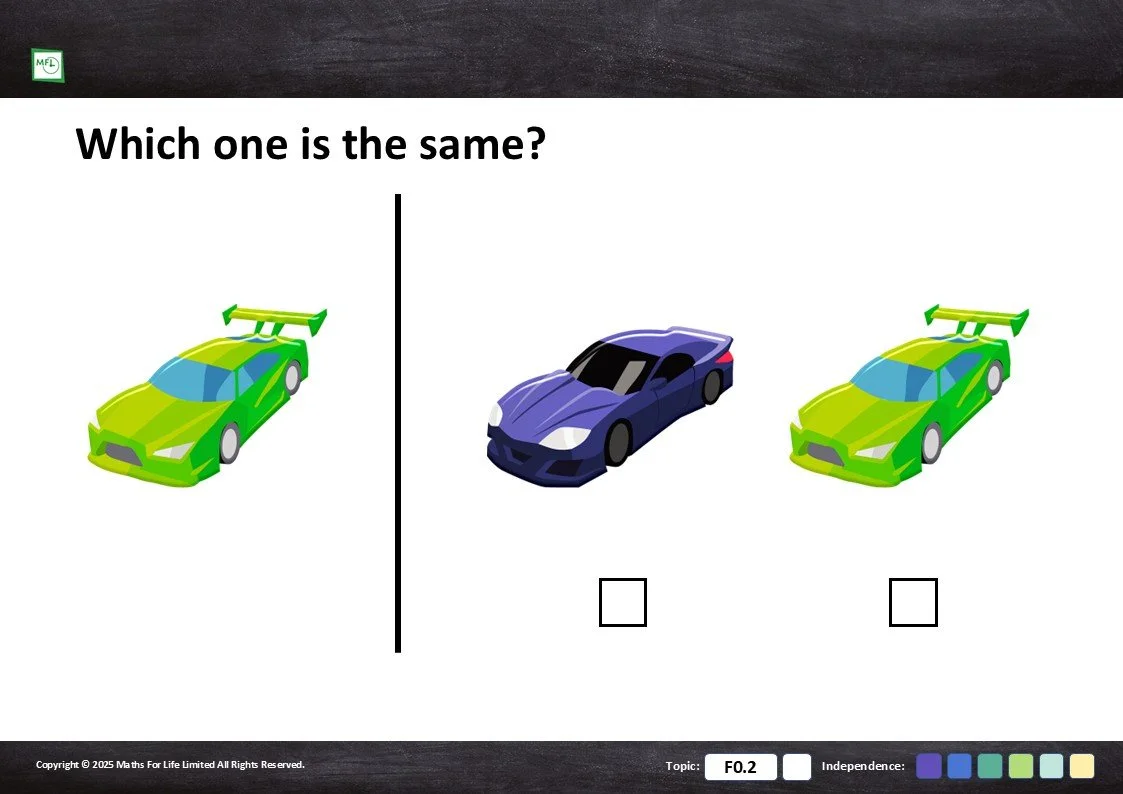 Select which is the same from a choice of 2, 3 and 4 characters using positional language.
