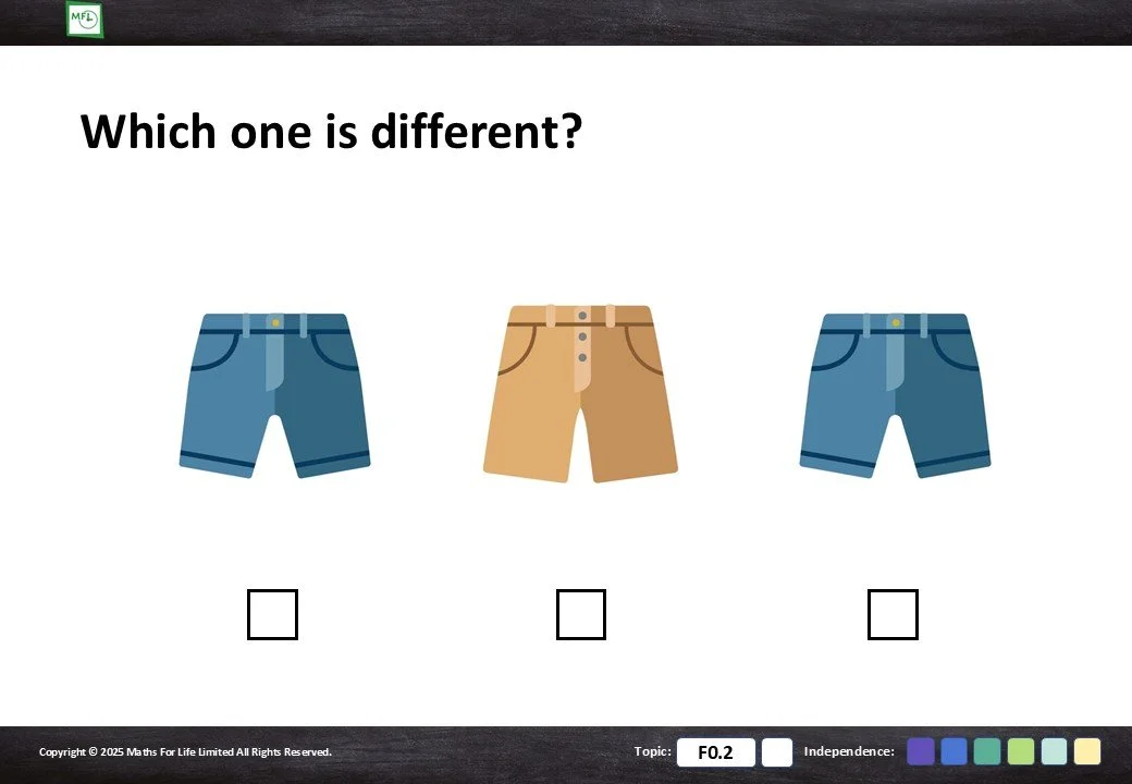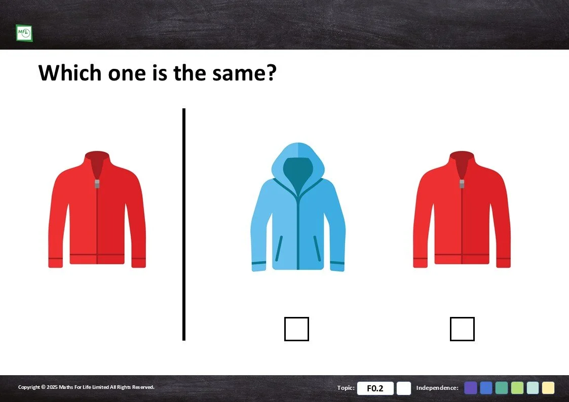 Select which one is the same from a range of 2,3 or 4 items of clothing.