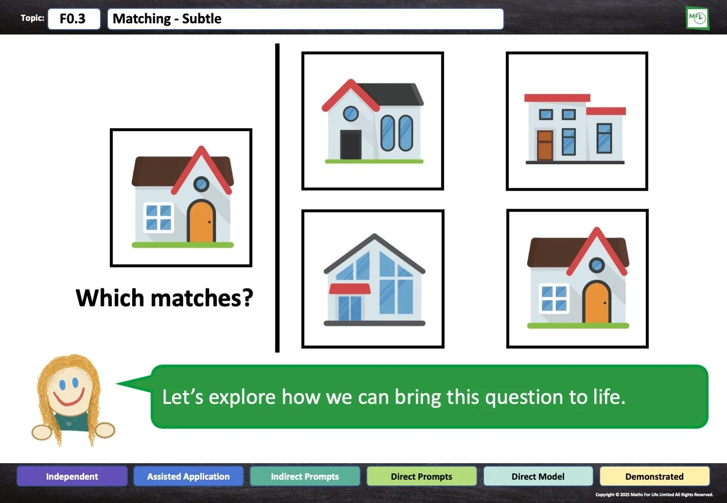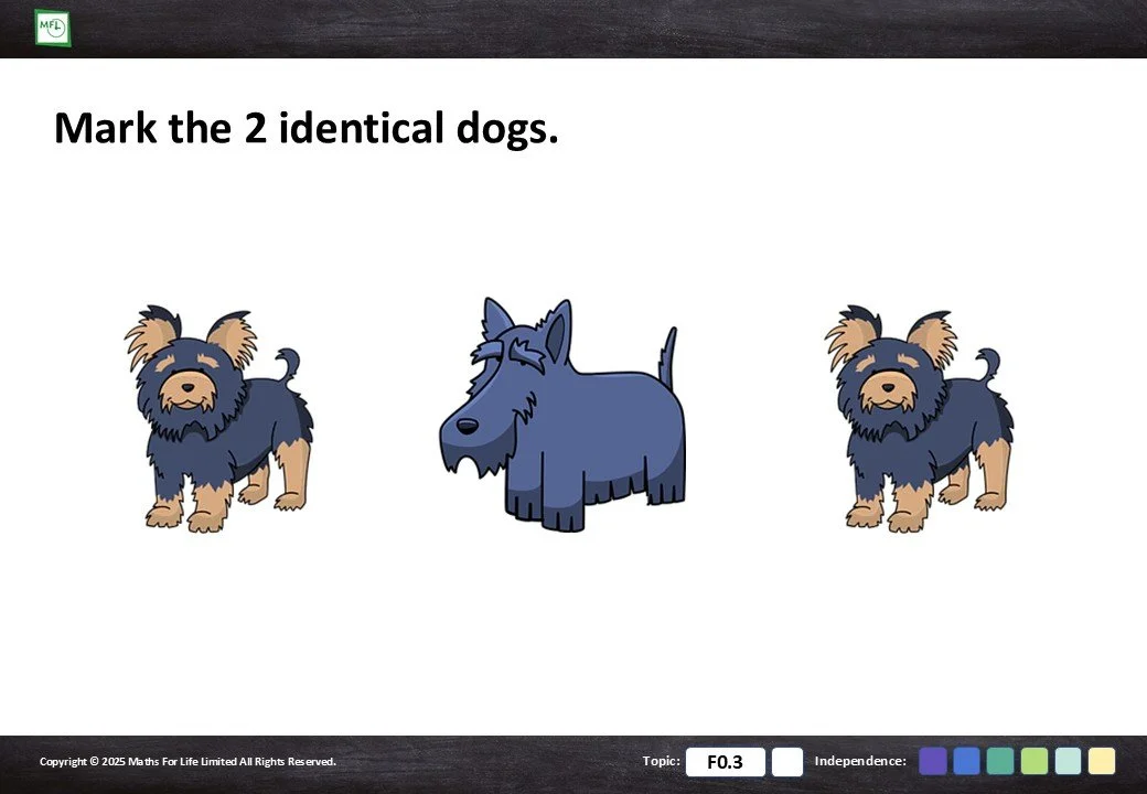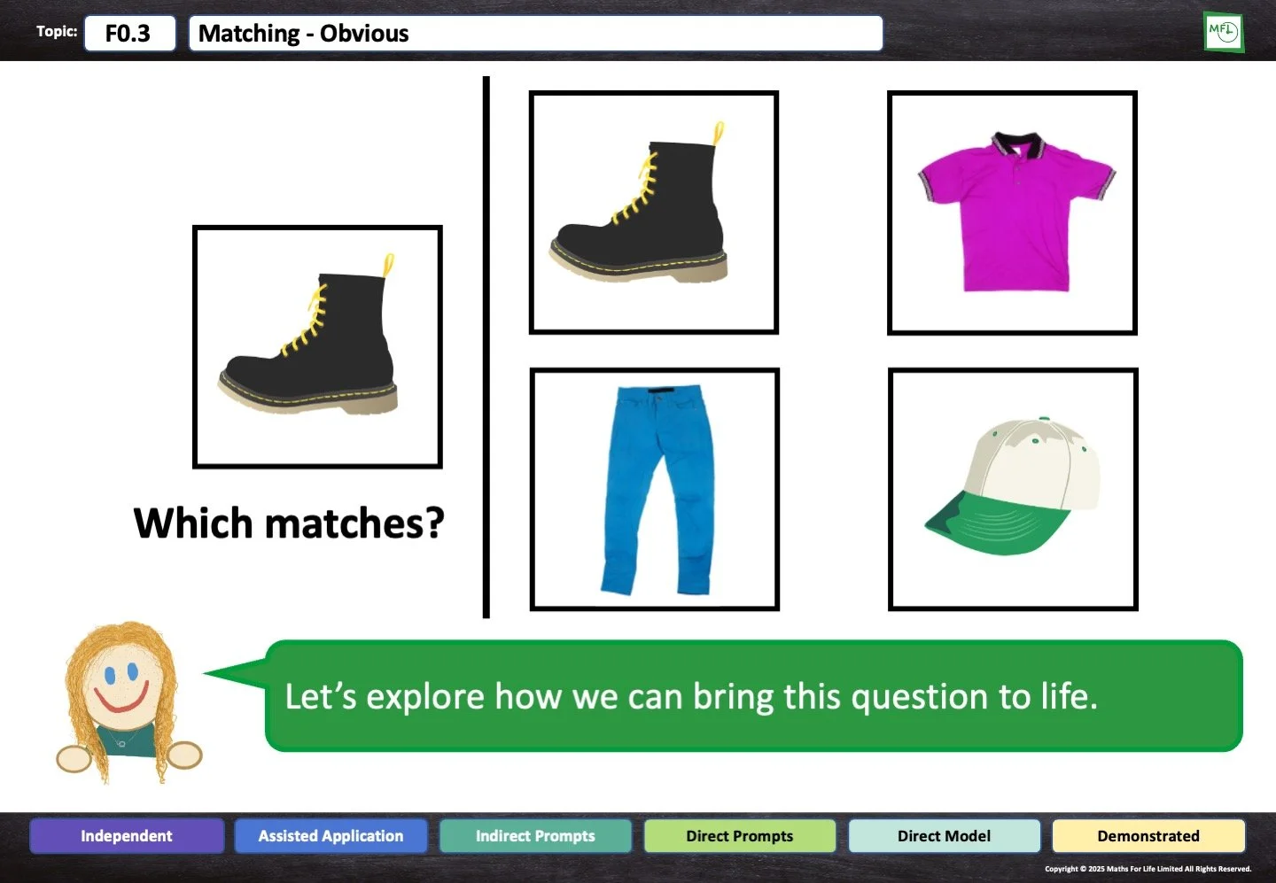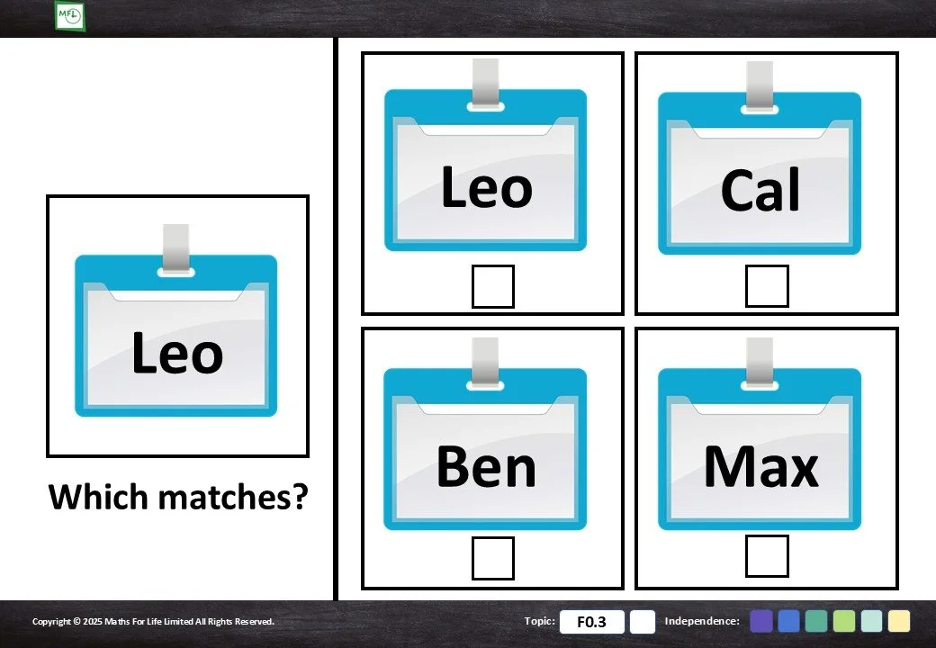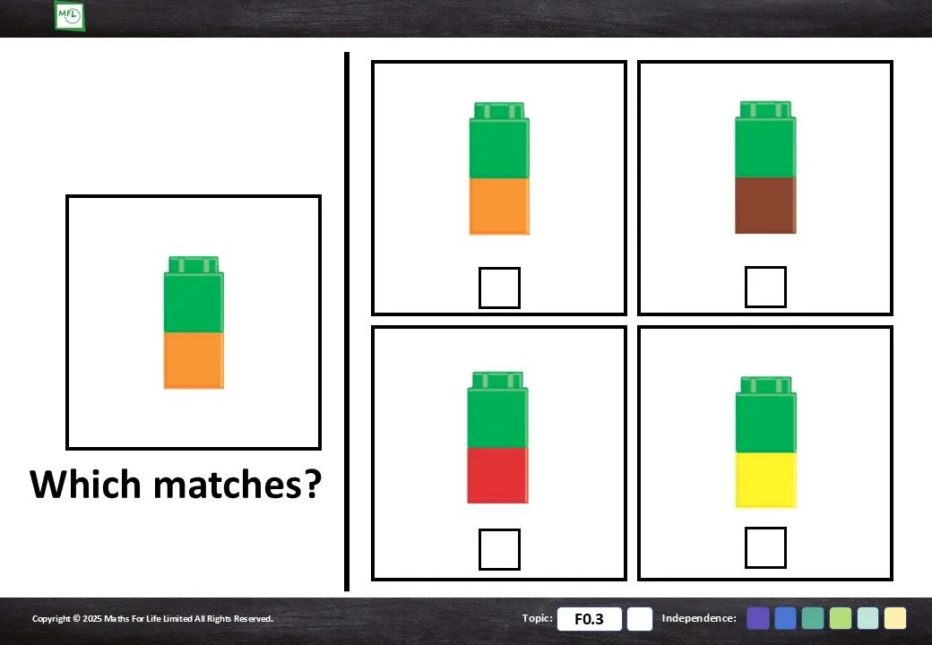 Identify which real life item matches from 4 options on a matching mat. What could you use?