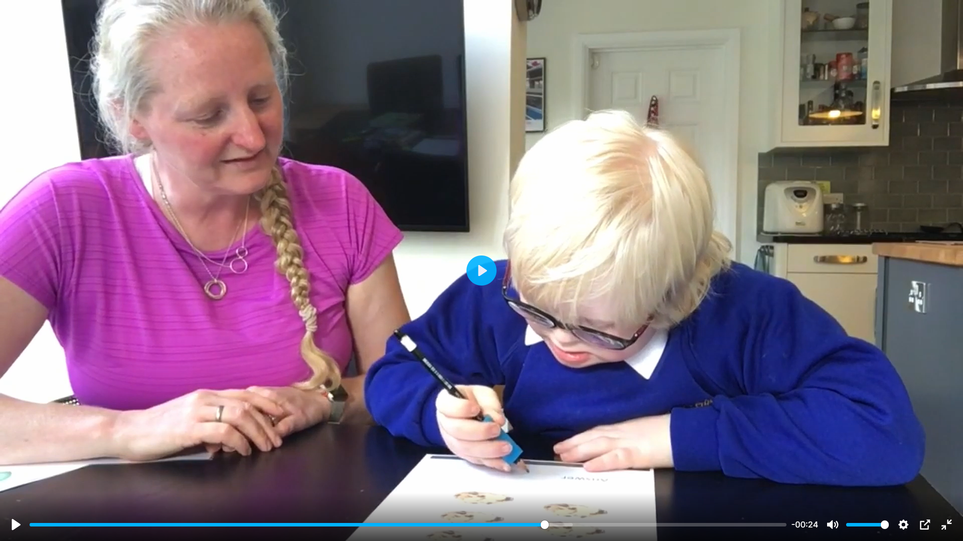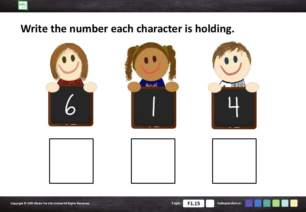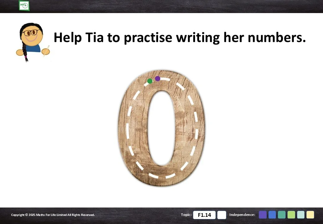 Lance counts the items on the worksheet and practises writing the number 6 using a number line to support him.
