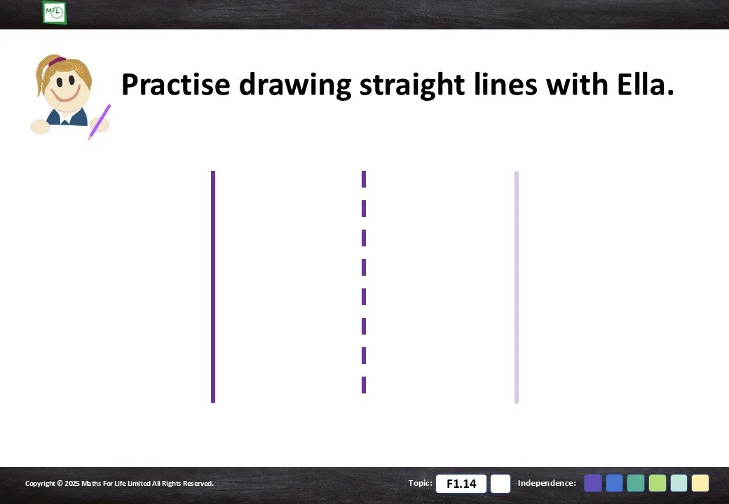Use a pencil, pen, paint, chalk or even your finger to practise drawing straight lines and curves.