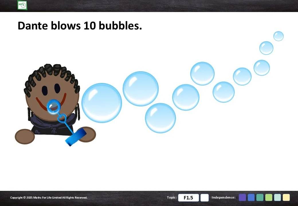 Count along with Dante blowing bubbles 1,2,3,4,5,6,7,8,9,10!