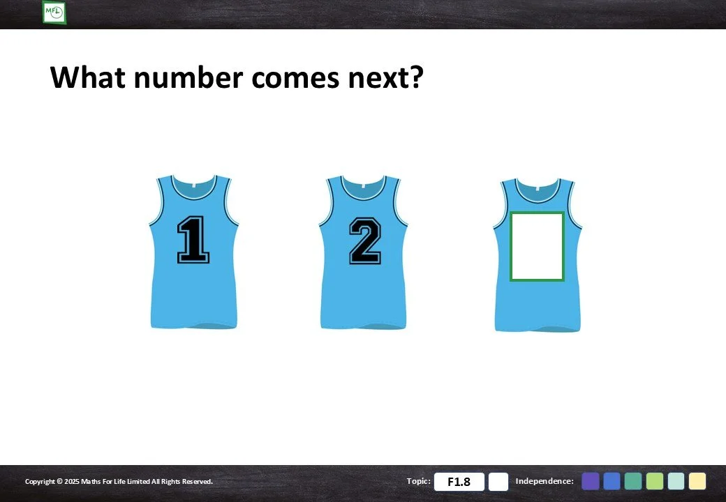 Count 1-3 completing the sequence or missing number on the jerseys.