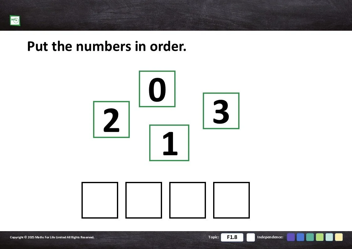 Use stable order to put the numbers in order. You could cut out numbers to order them.