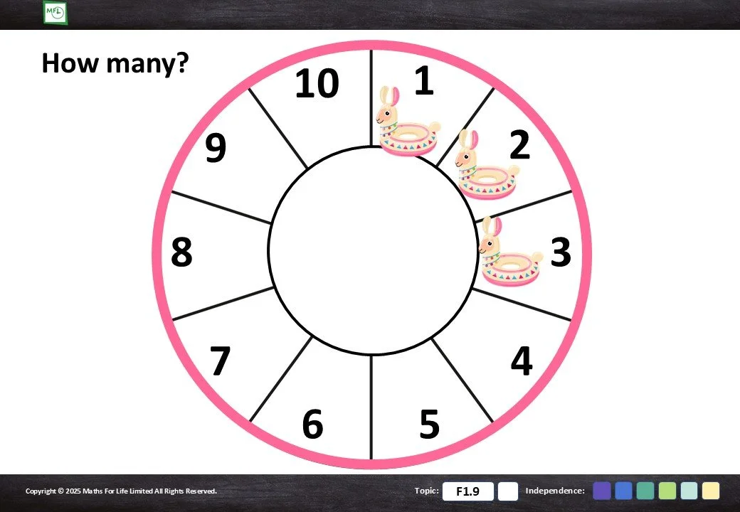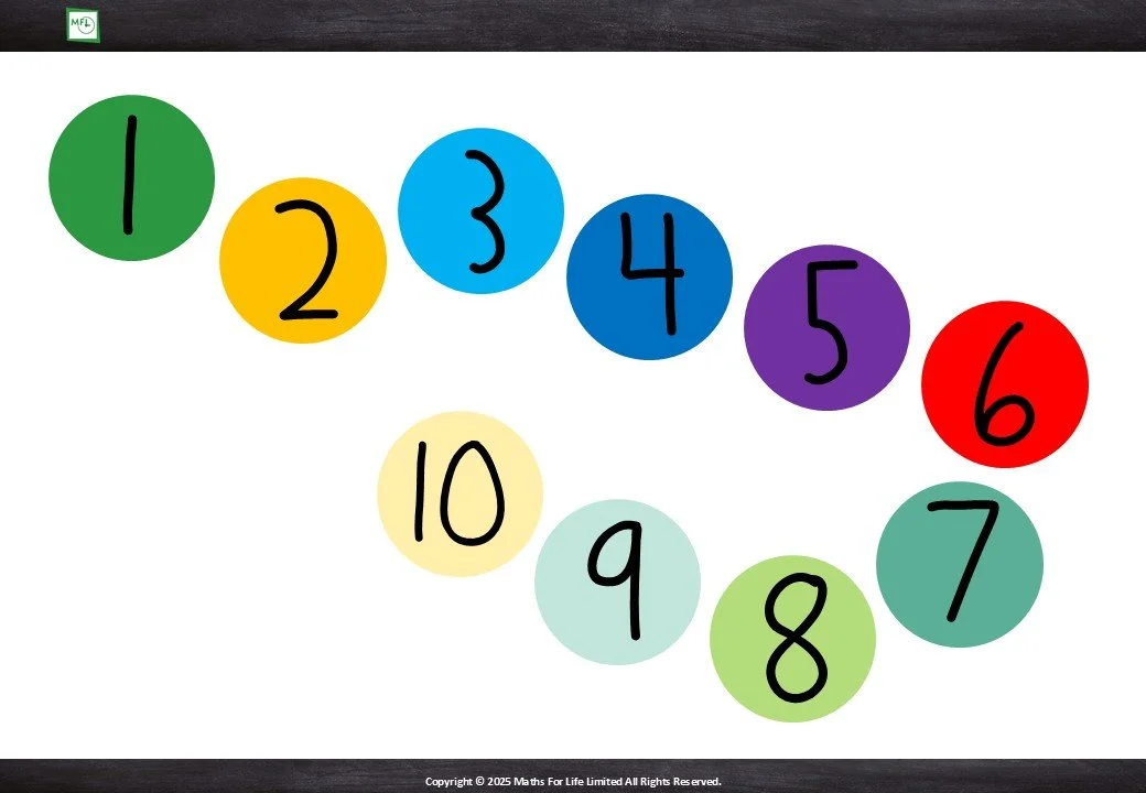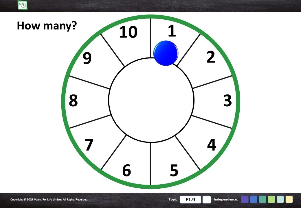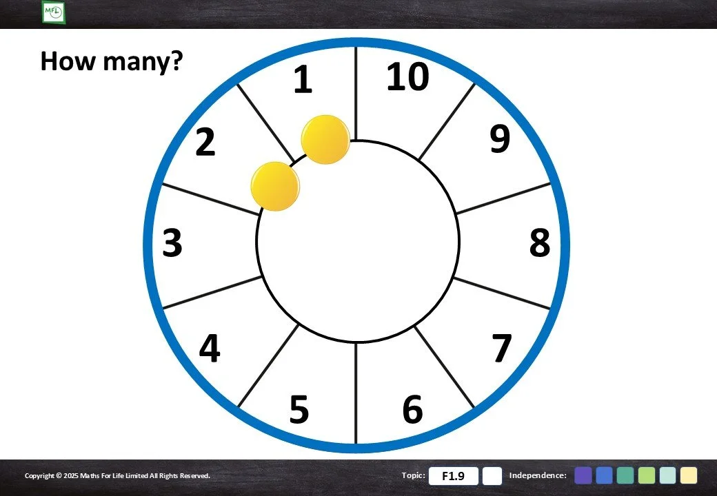Count how many counters in a circular format. Counting 1-10 anticlockwise.