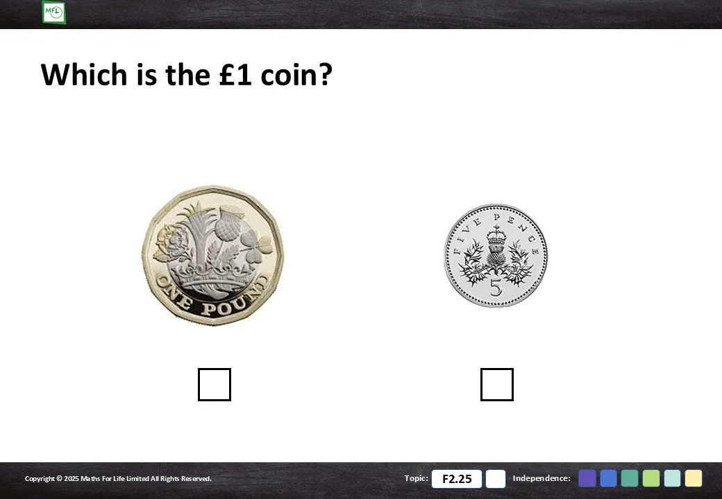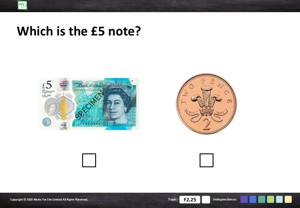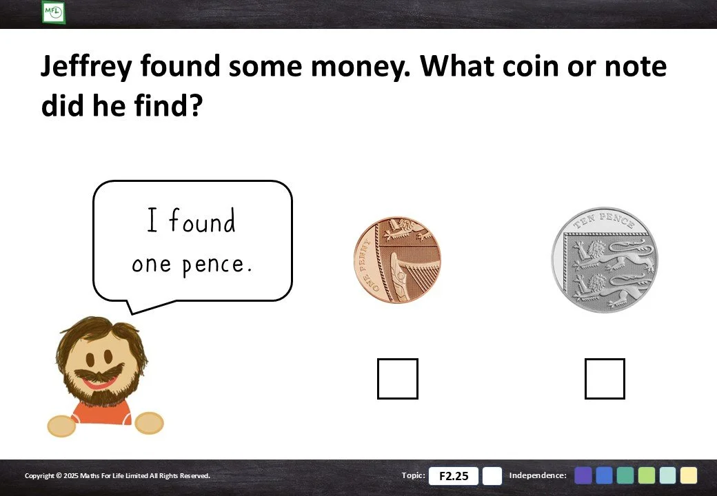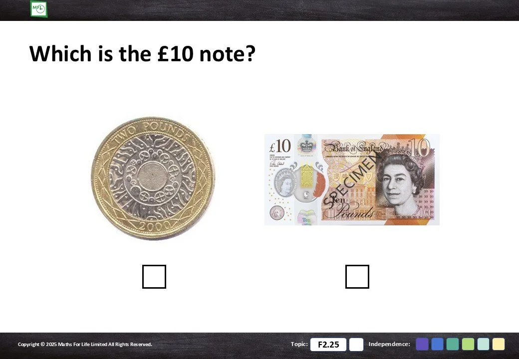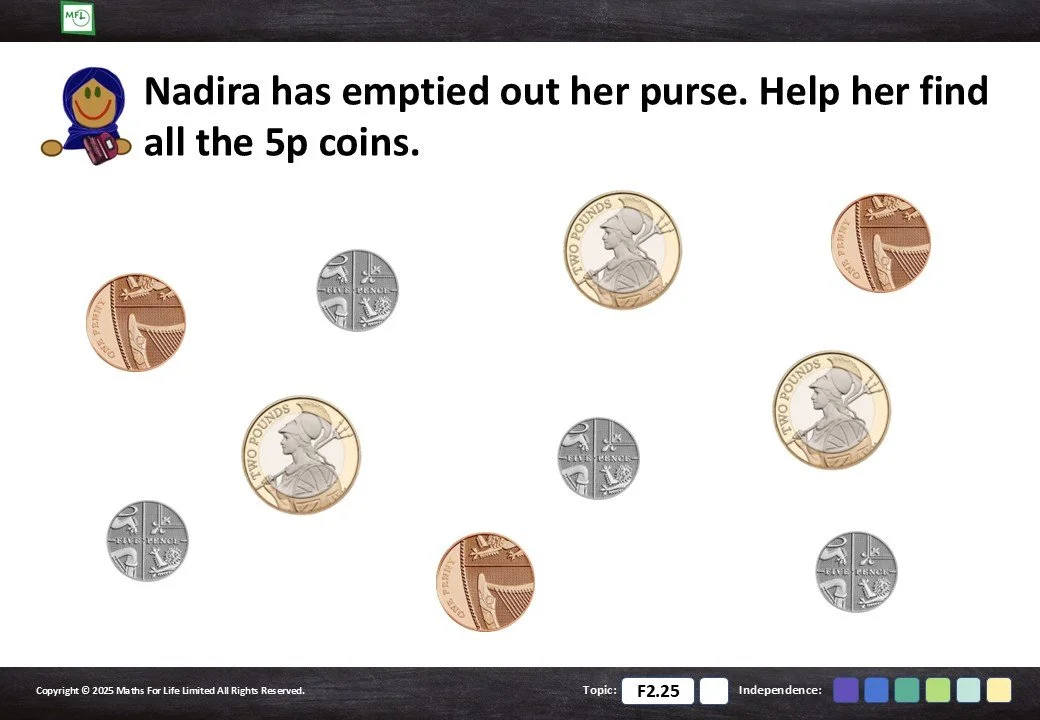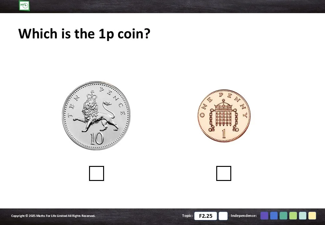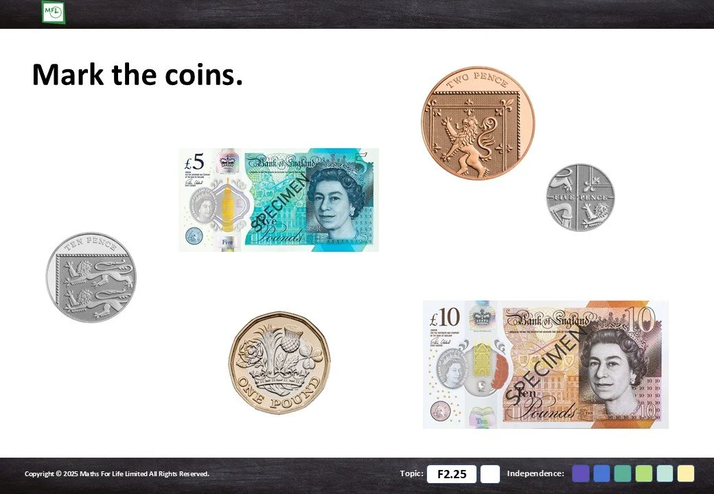 F2.25 Recognise coins and notes