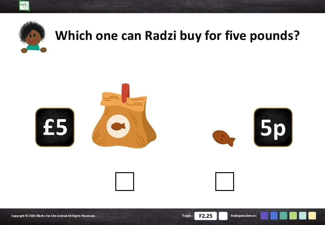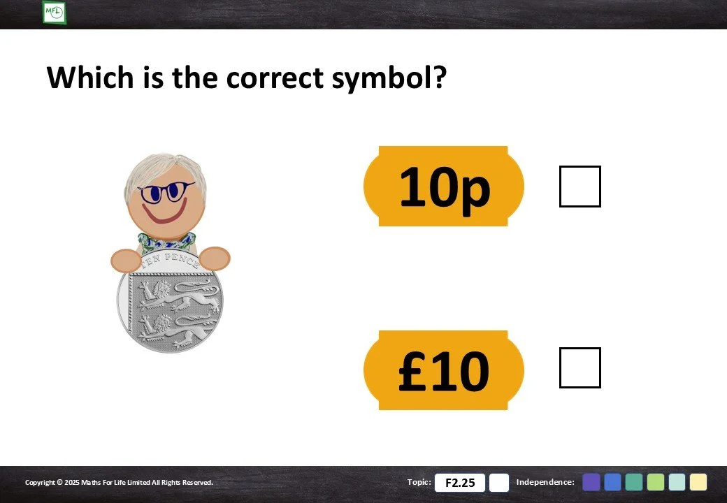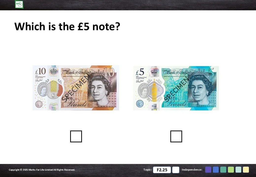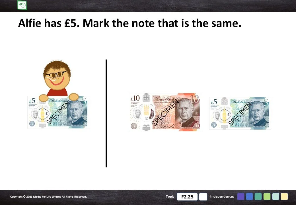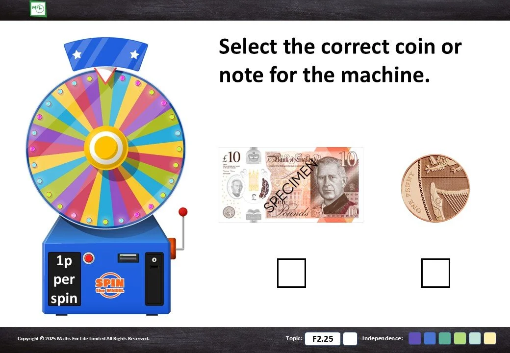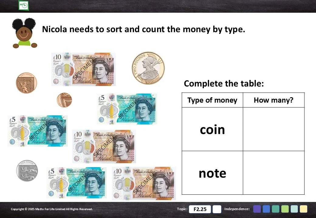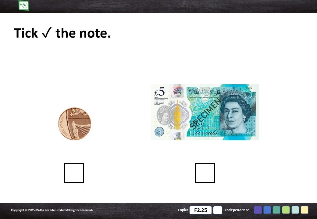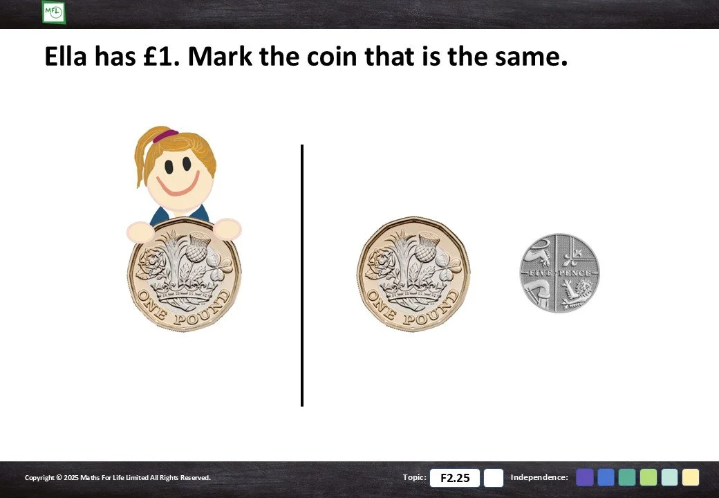 F2.25 Recognise coins and notes