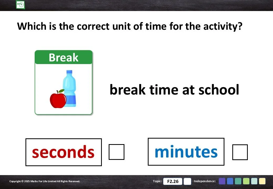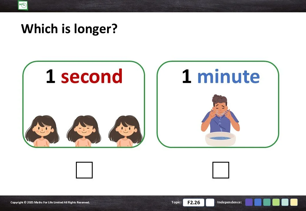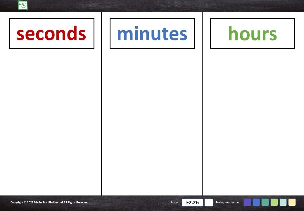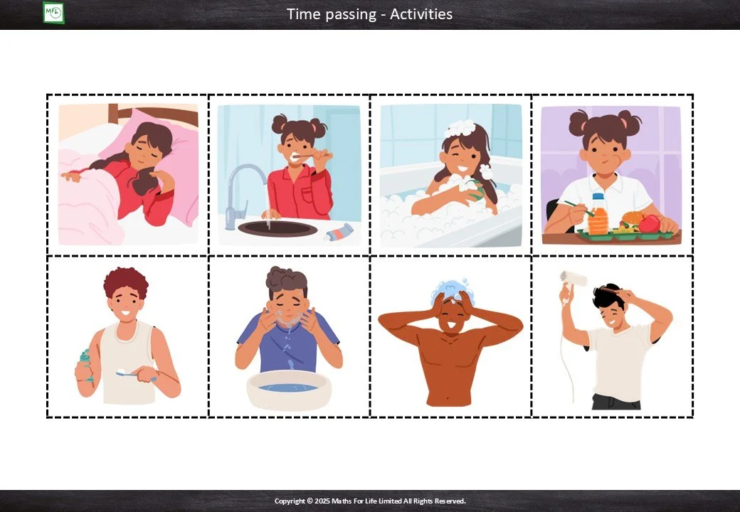Cut out and sort the activities by their duration - seconds, minutes or hours.