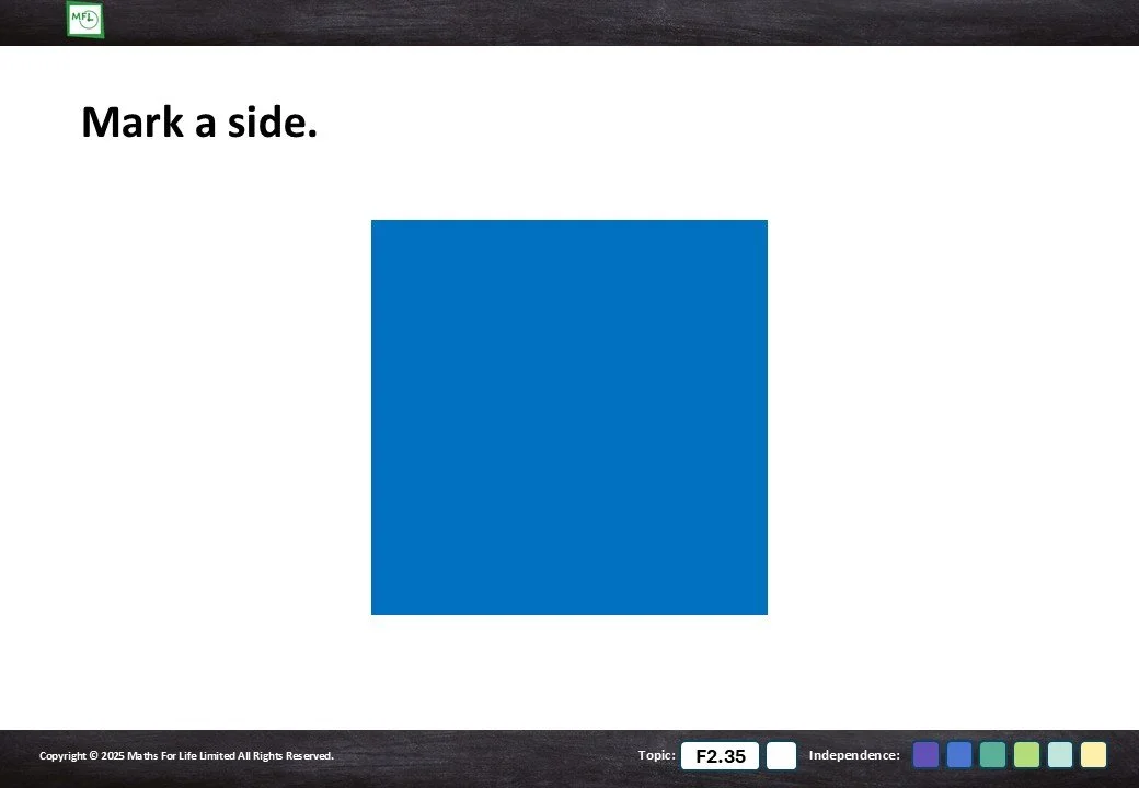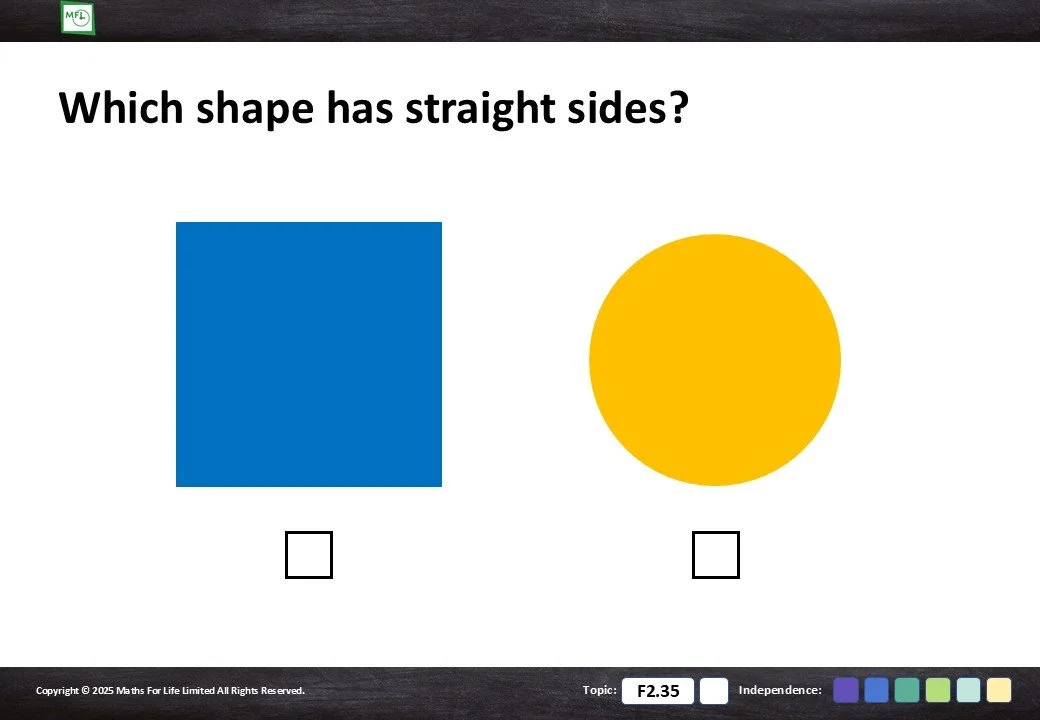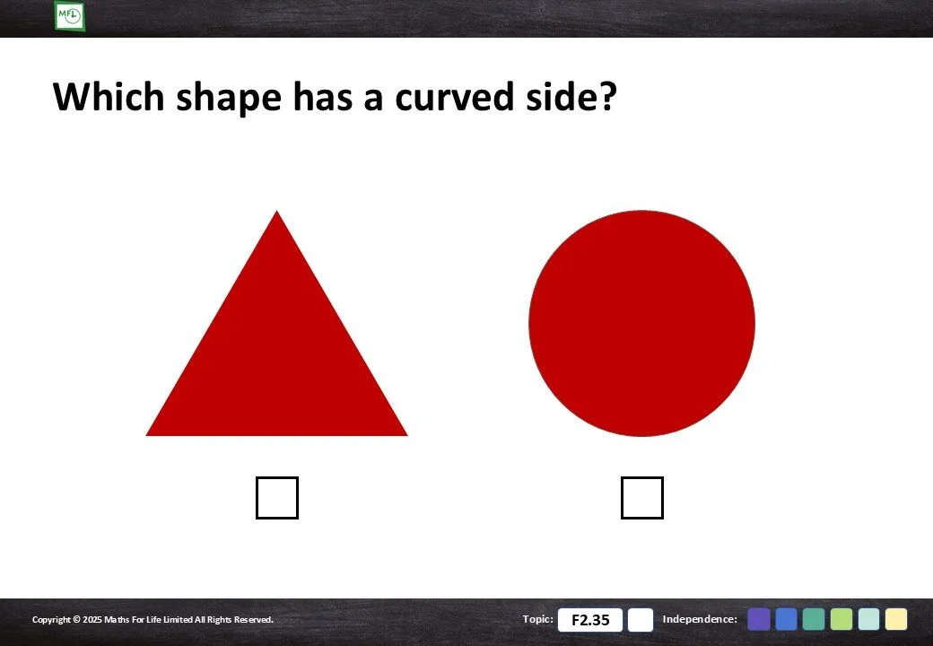 Identify curved or straight sides of 2-D shapes with changing colours.