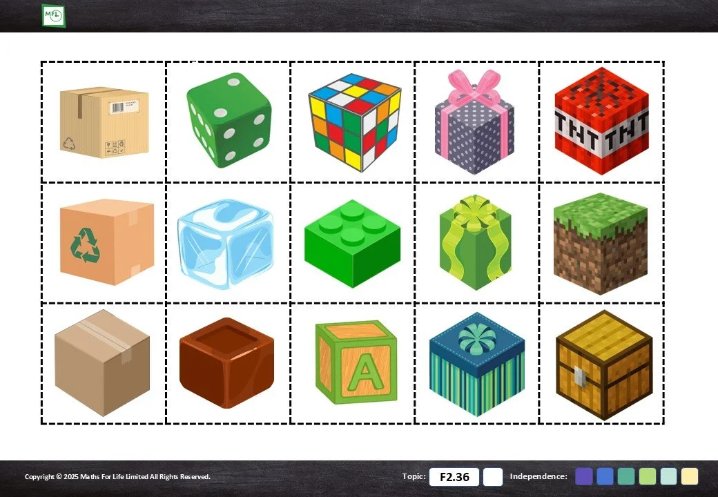 F2.36 Recognise basic 3-D shapes
