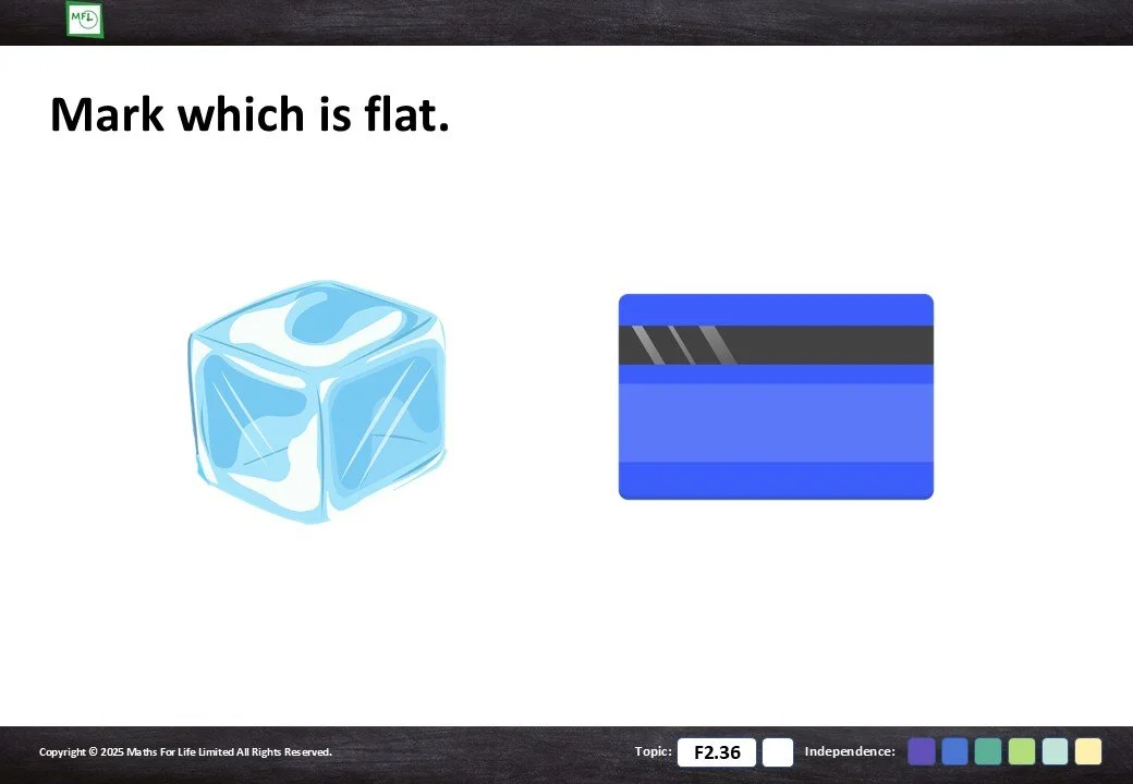 Practise identifying if an object is flat or not flat.
