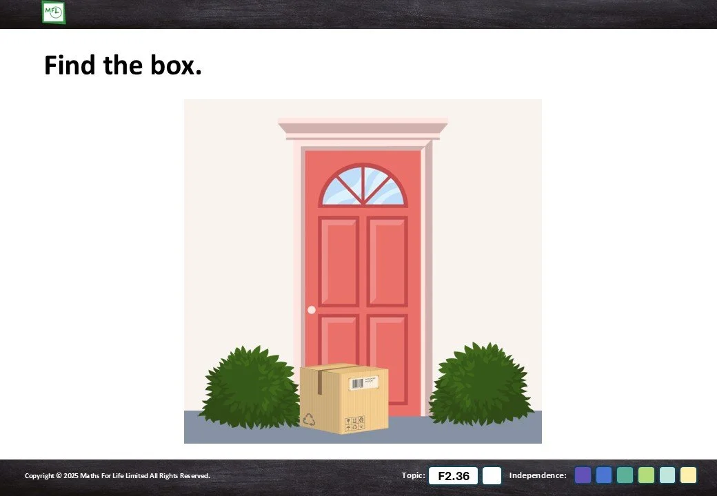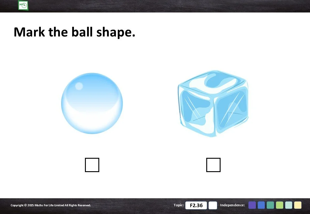 Practise identifying box or ball shaped objects.