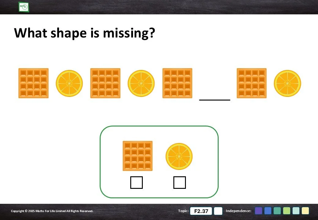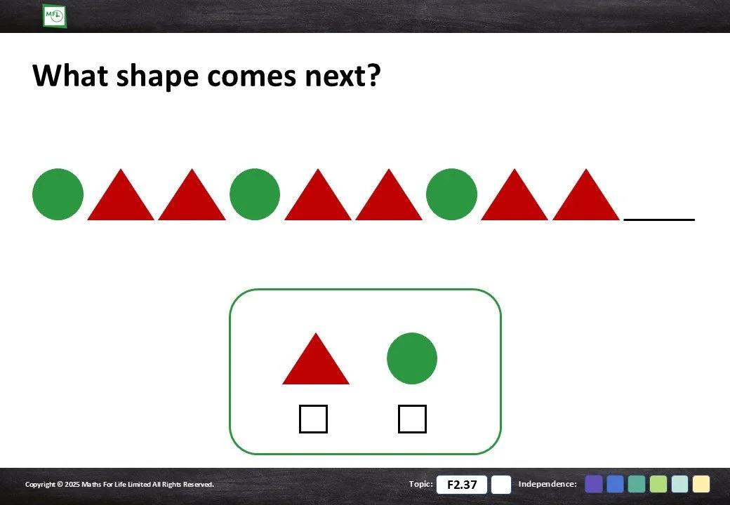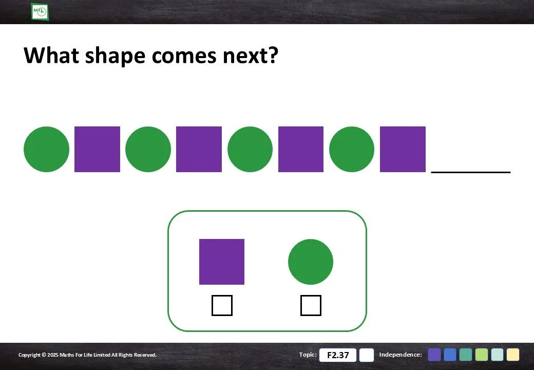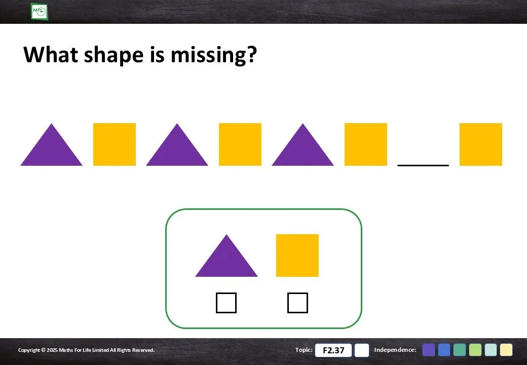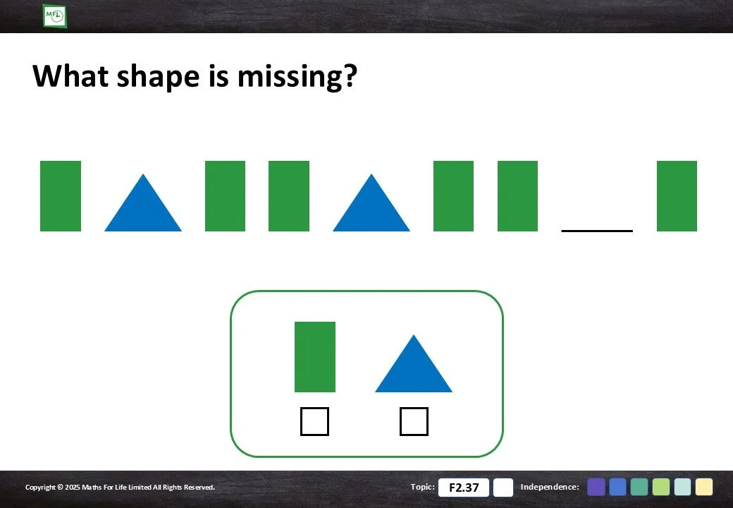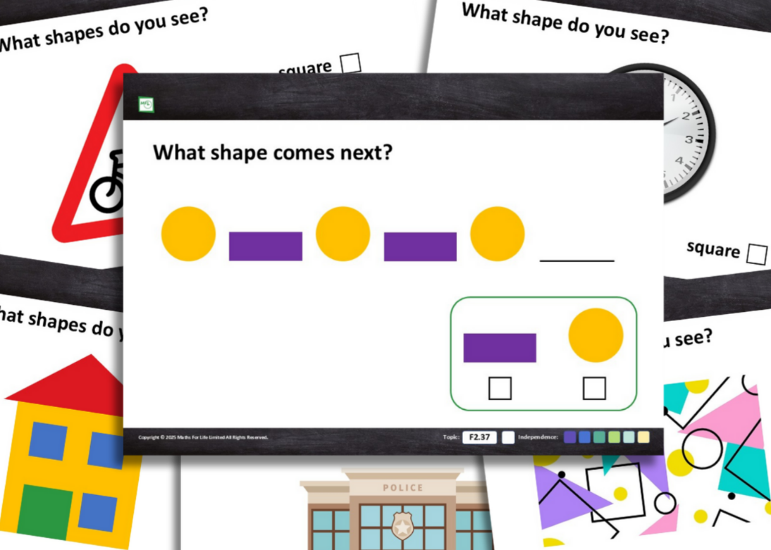 Identify and select a variety of shapes to make simple pictures, patterns and models.