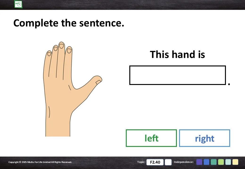Decide which is left or right out of a pair of hands, feet, shoes or gloves.