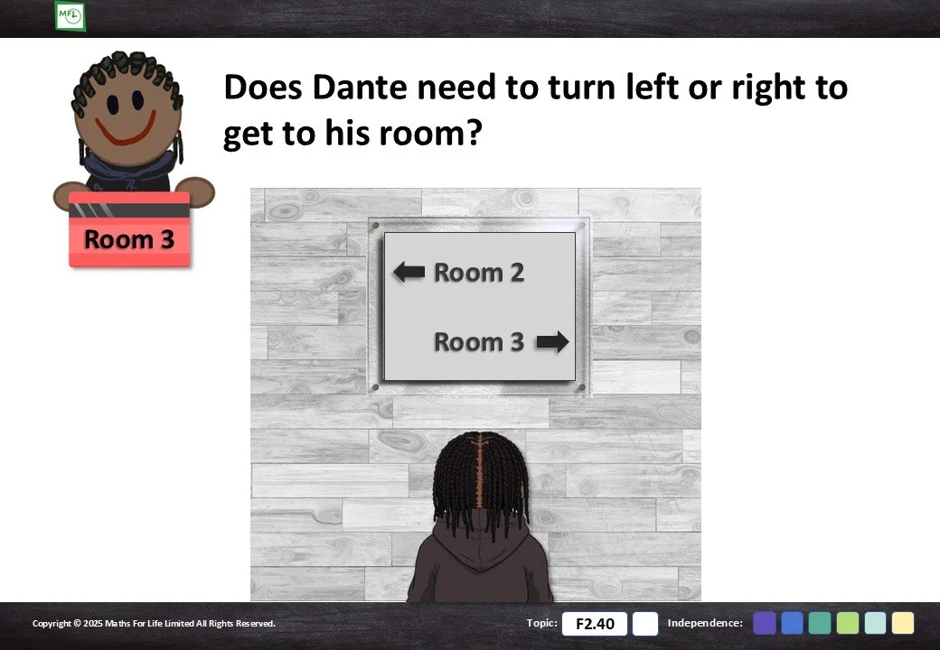 Choose the correct word to complete the sentence. Introducing idea of point of reference.