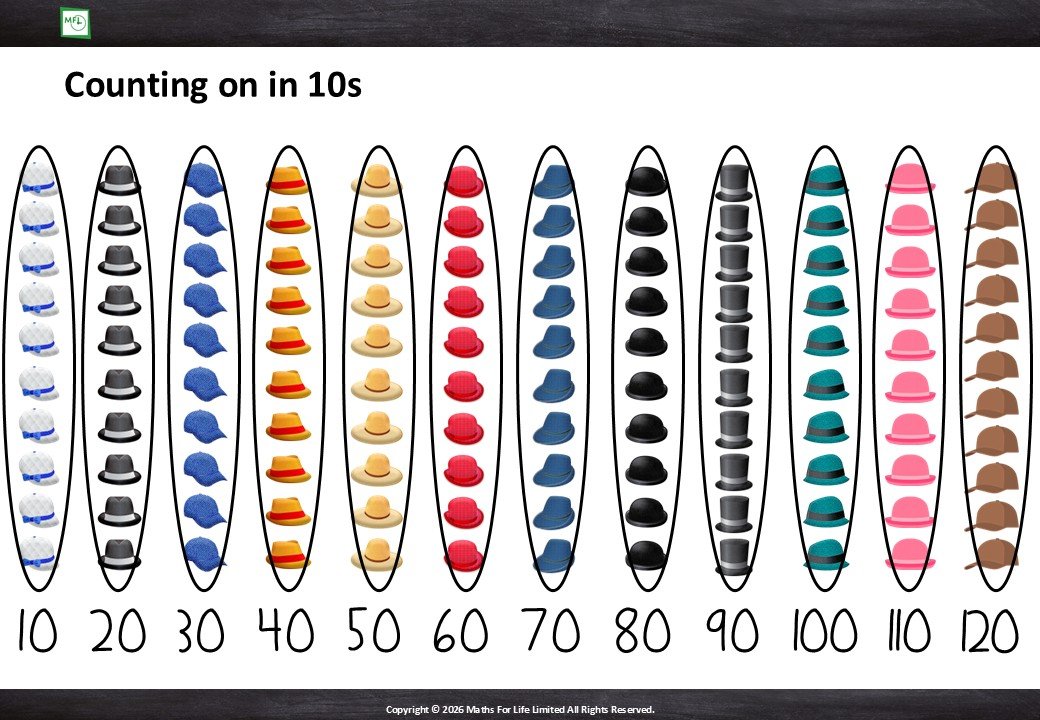 Groups of 10 and number line to 10x12