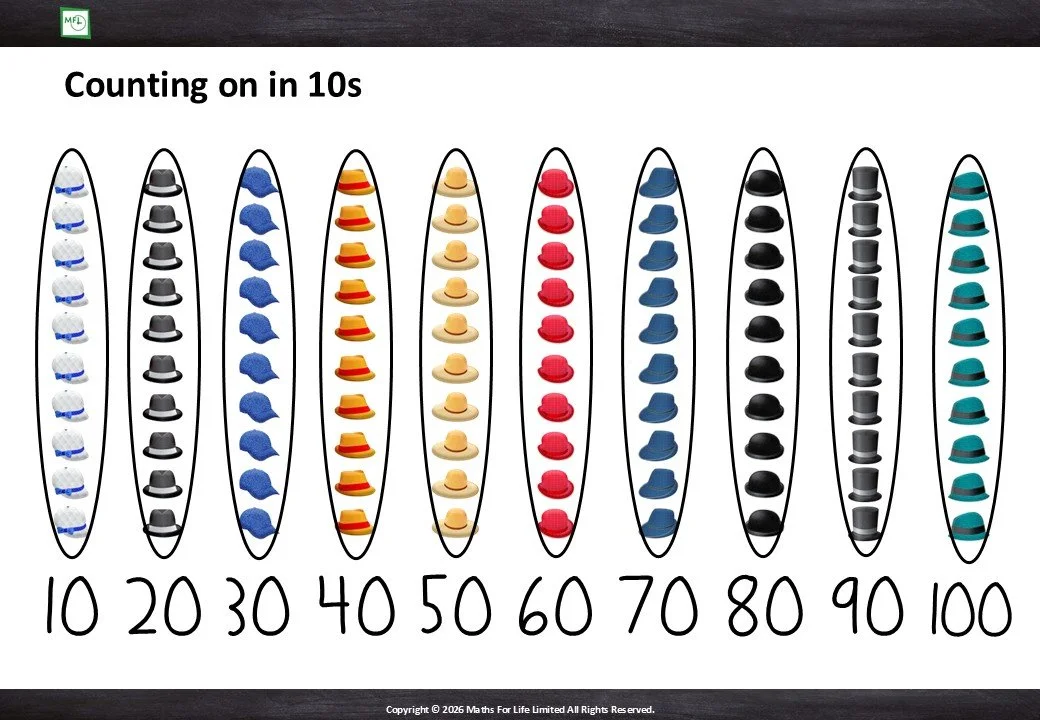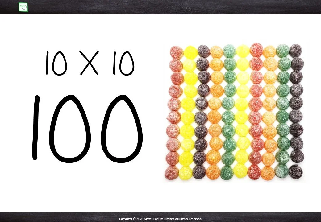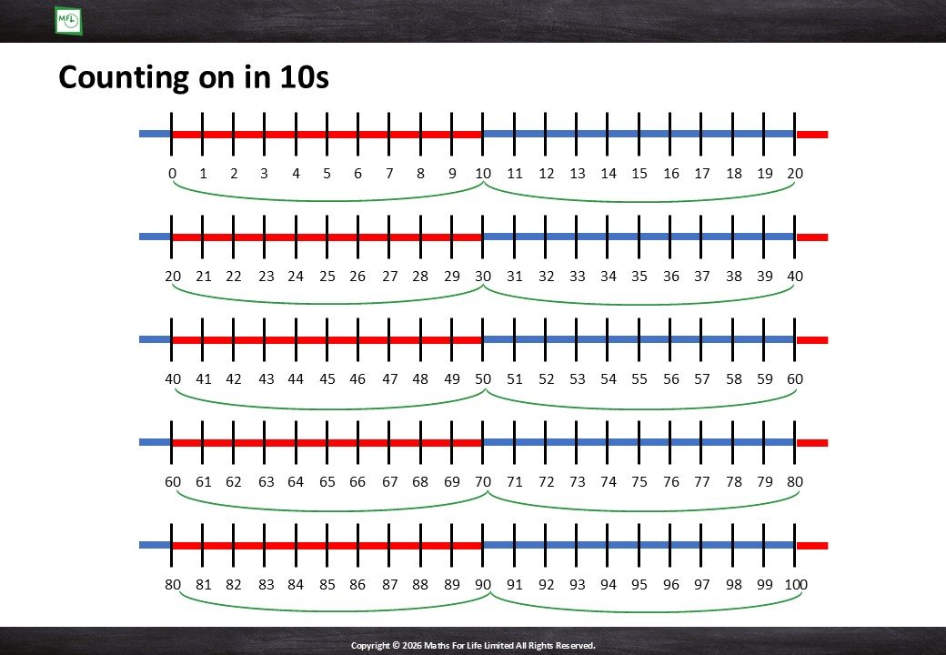 Groups of 10 and number line to 10x10