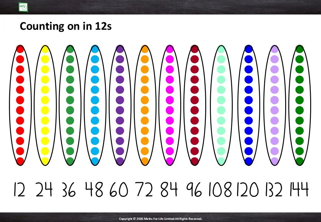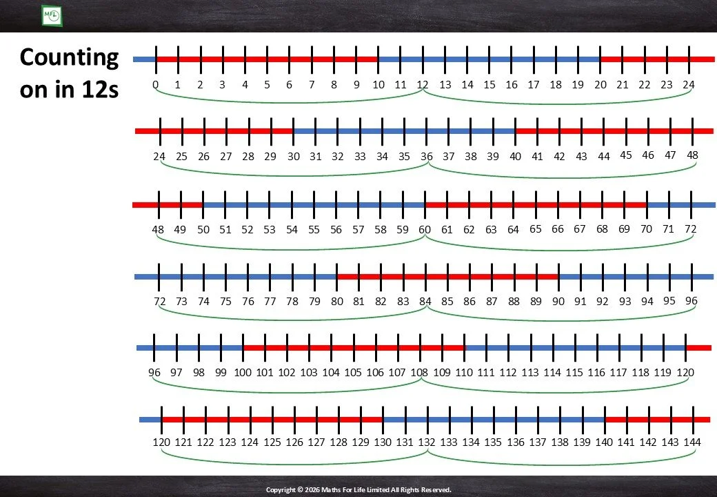 Groups of 12 and number line to 12x12