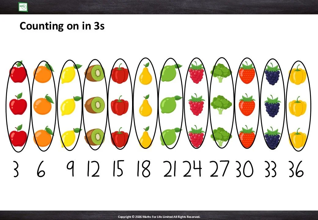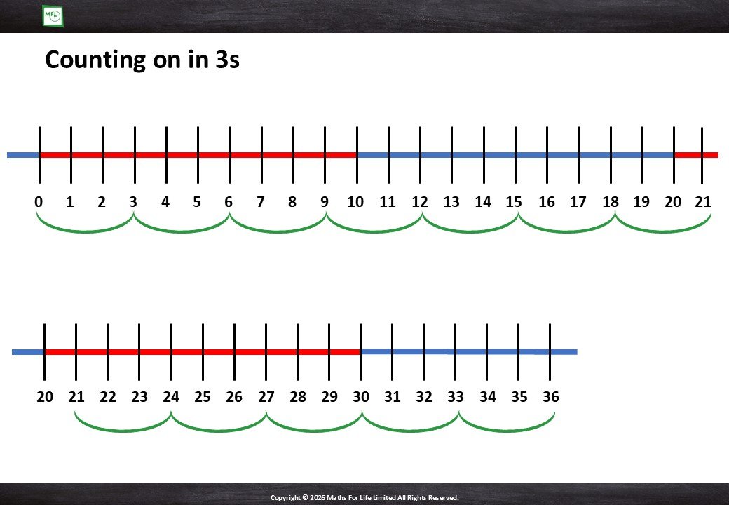 Groups of 3 and number line to 3x10