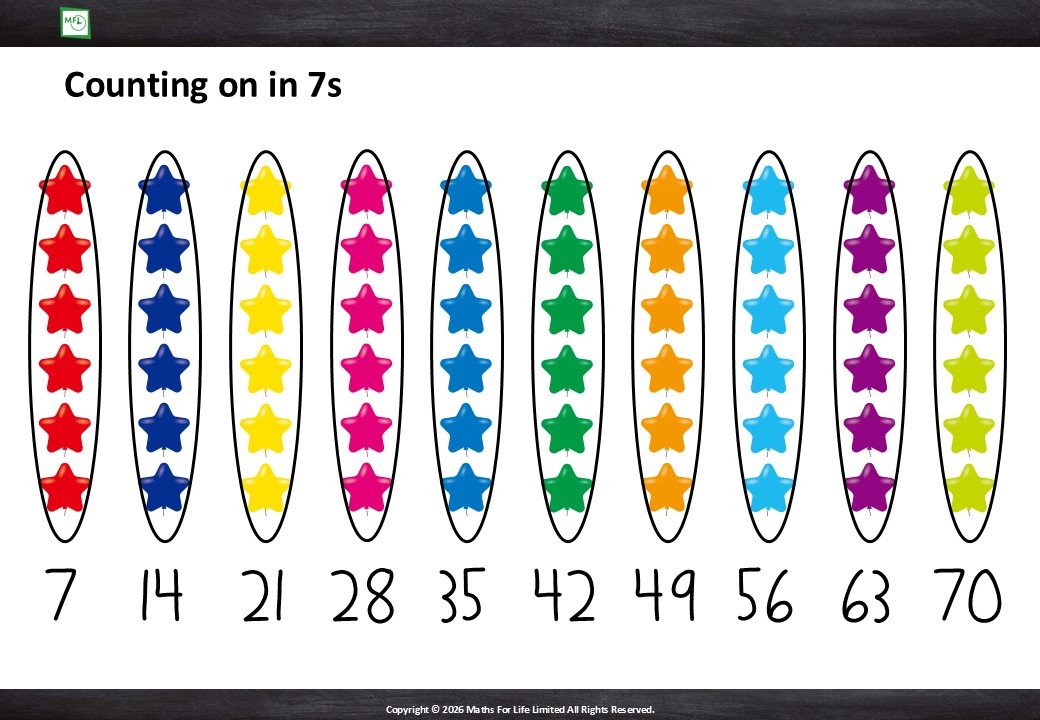 Groups of 7 and number line to 7x10